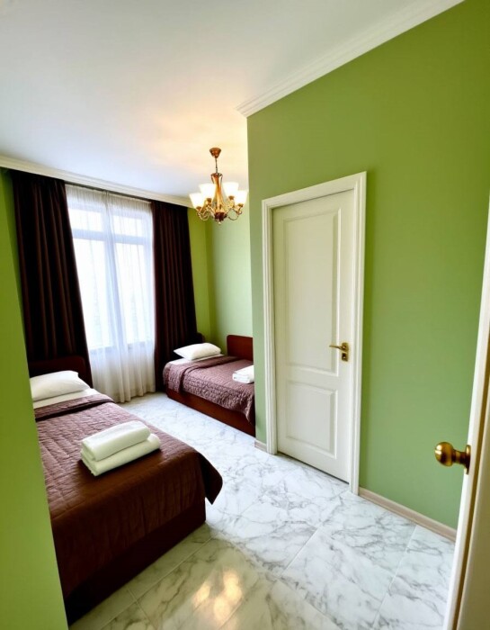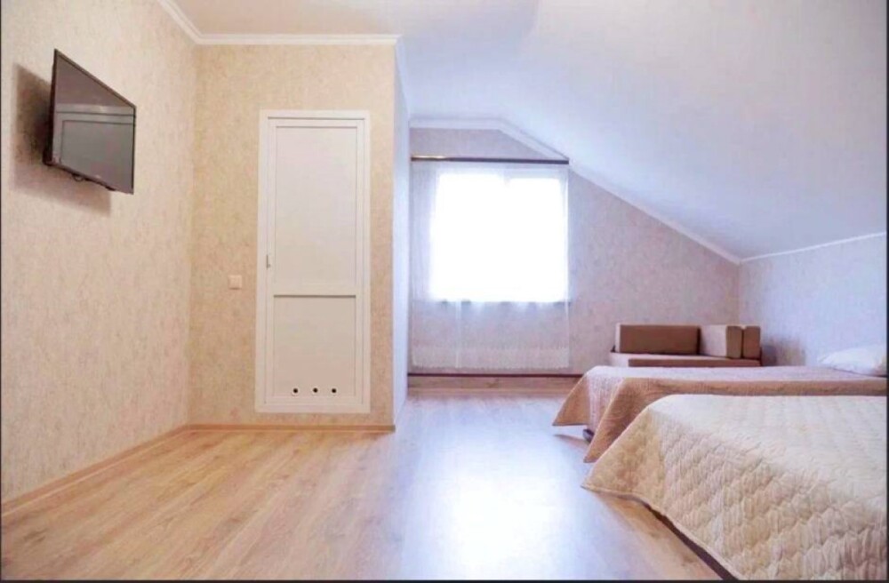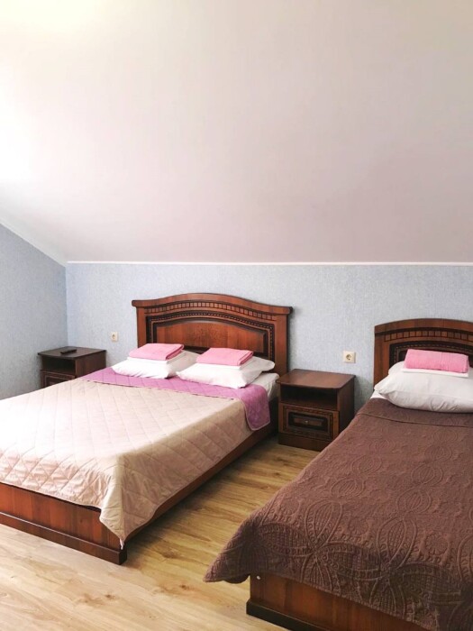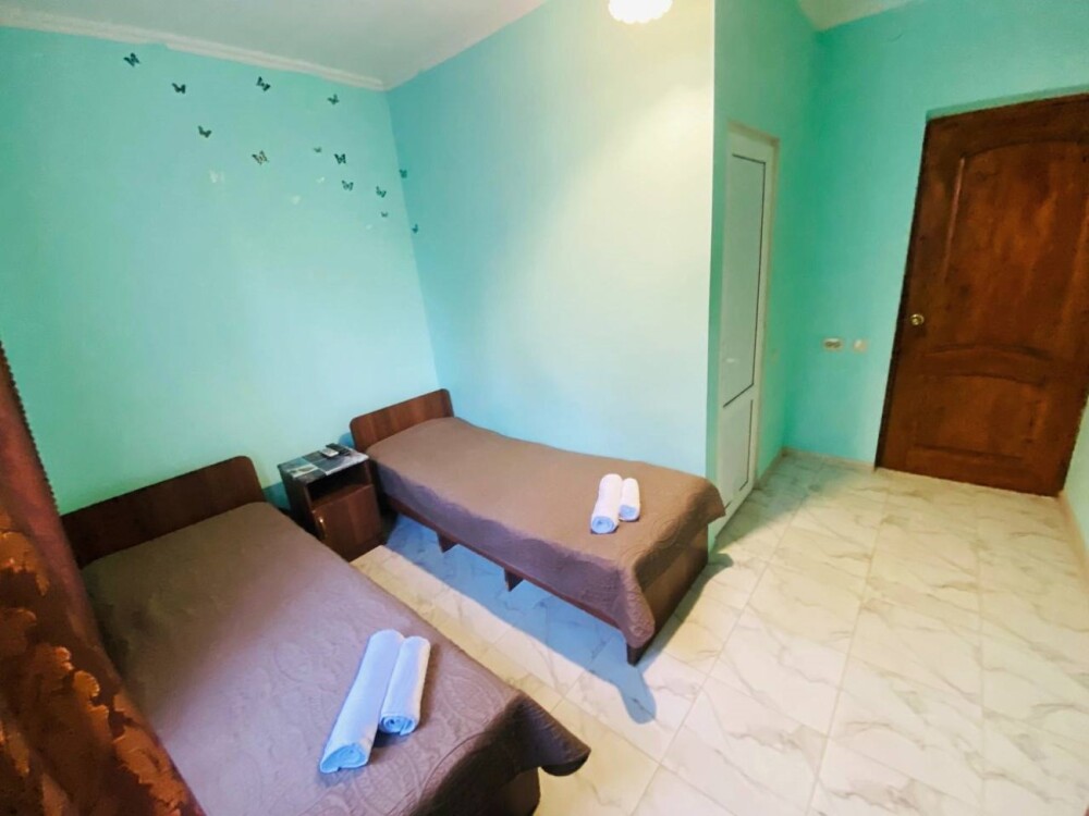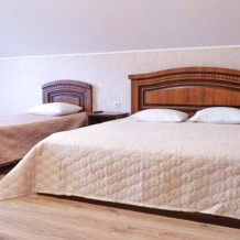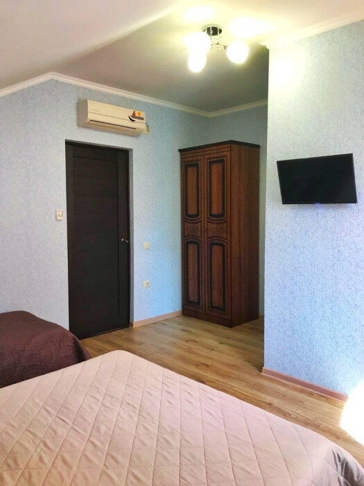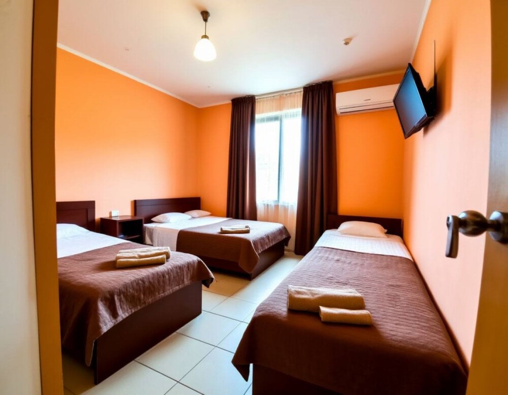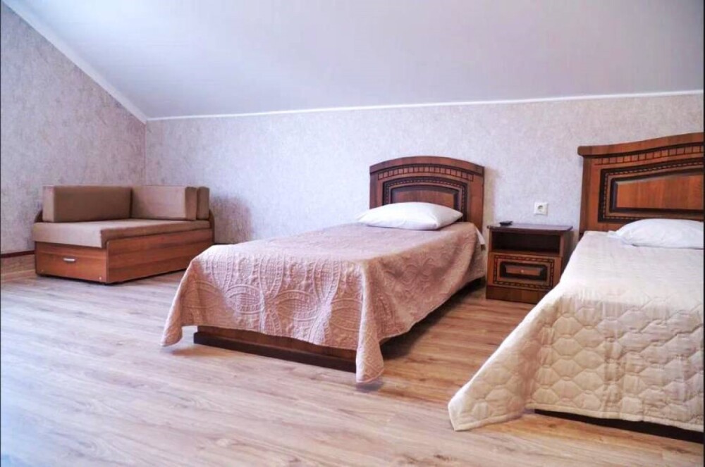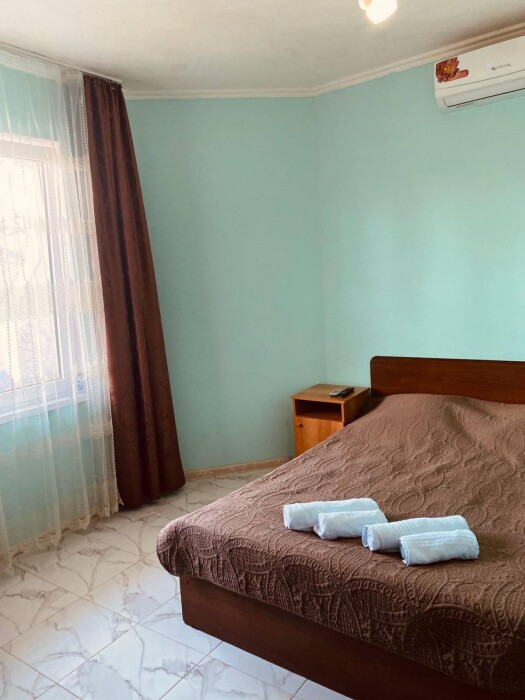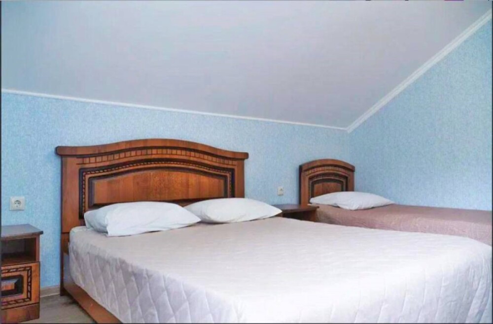 В номере есть двуспальная и односпальная кровать, постельное белье, полотенца, телевизор и кондиционер. Санузел расположен в номере.