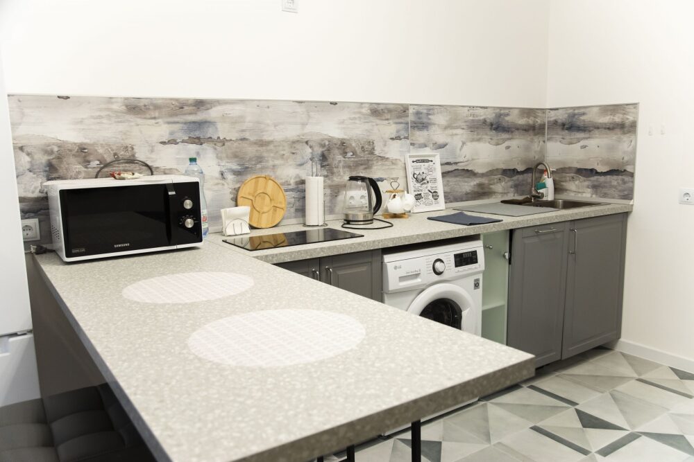 Апартаменты уютно обставлены и оснащёны необходимым, чтобы отдохнуть после долгого и насыщенного дня. Имеются телевизор, гладильные принадлежности, микроволновая печь, Wi-Fi.