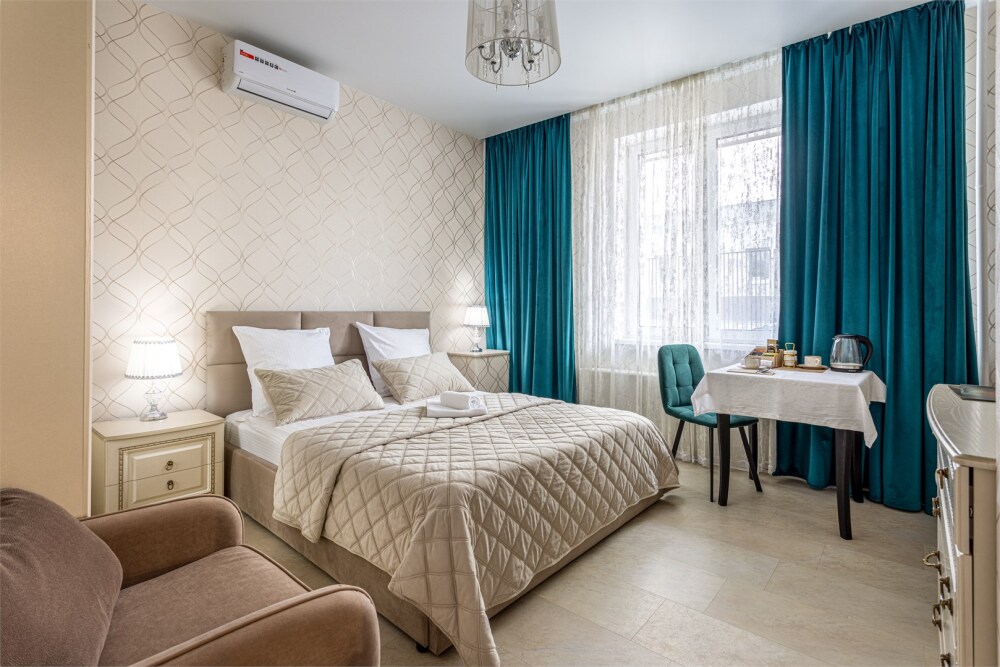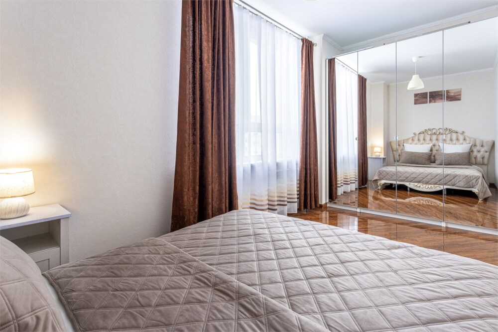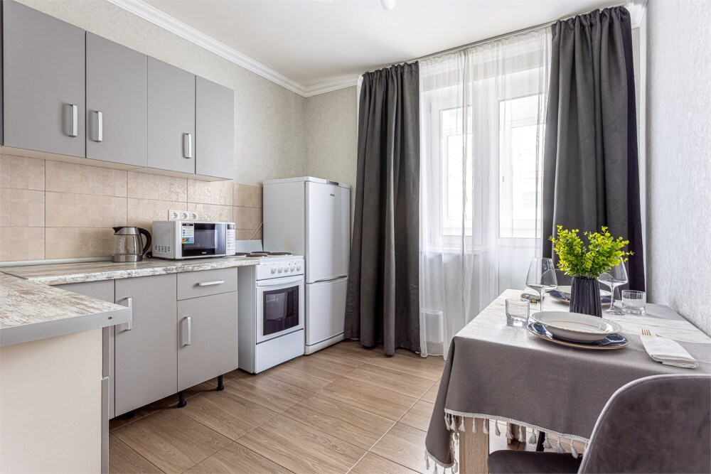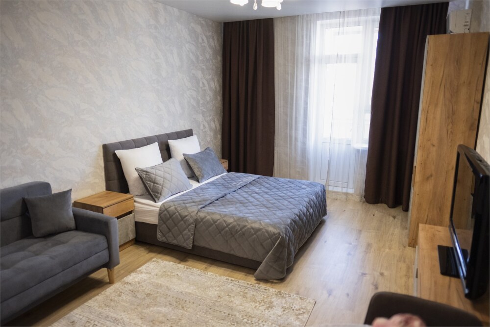 Апартаменты находятся в современном жилом районе, где есть все необходимое для комфортного проживания, как длительного, так и краткосрочного: банки, кафе, рестораны, супермаркеты, салоны красоты, торговый центр.