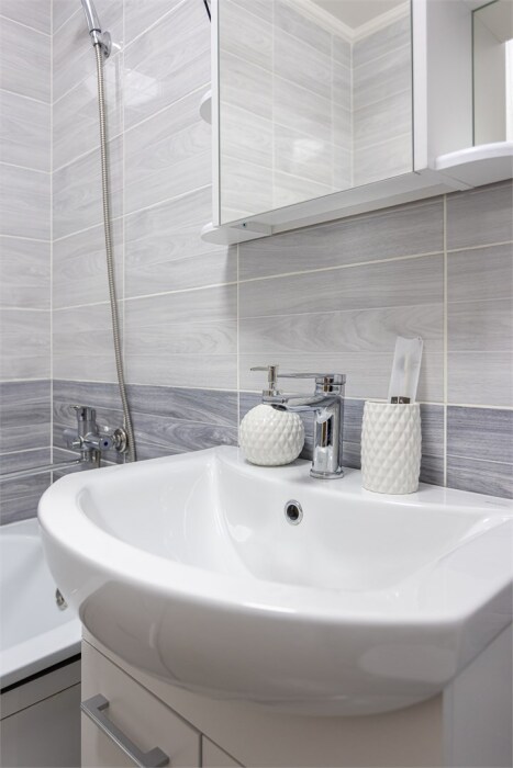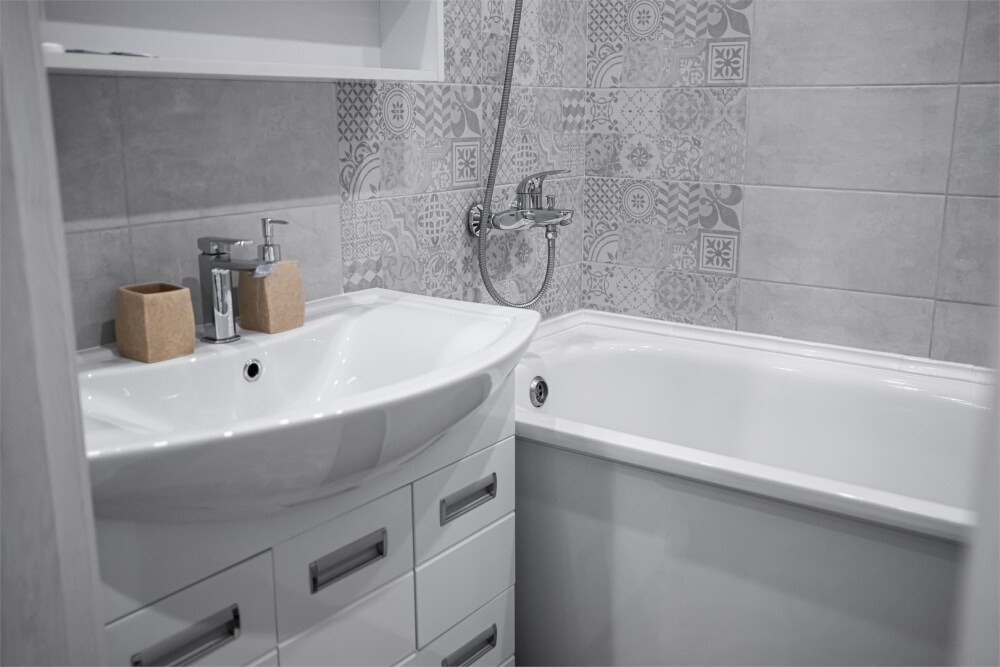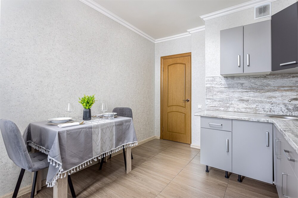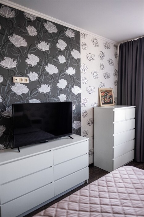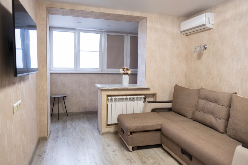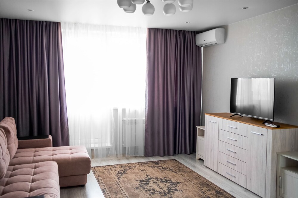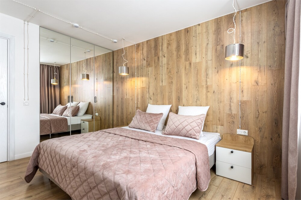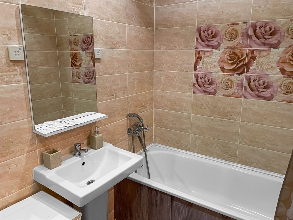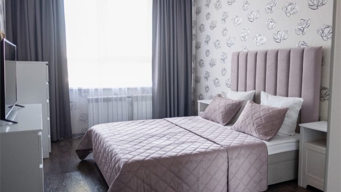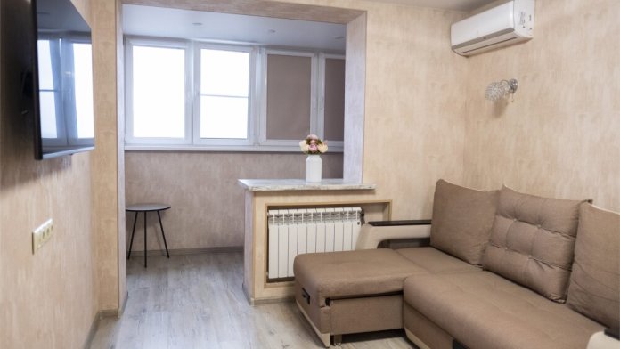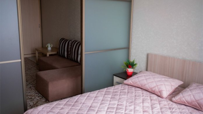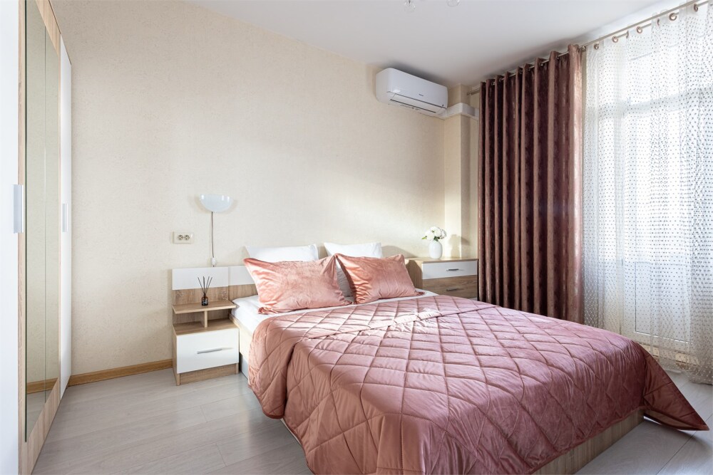 Светлая уютная квартира в нежно розовых оттенках прекрасно подойдет для одиночного размещения.