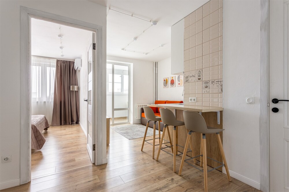 Двухкомнатная студия в бежевых тонах для спокойного отдыха в кругу семьи.