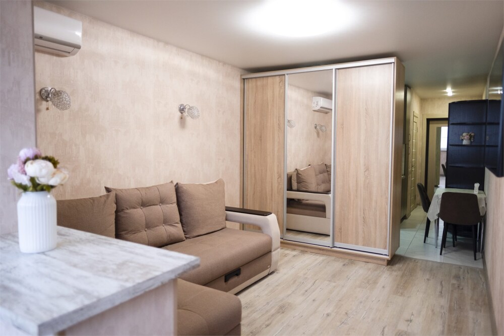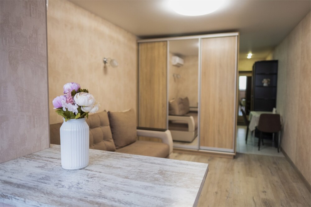 Компактная уютная двухкомнатная студия для небольшой компании или семьи.