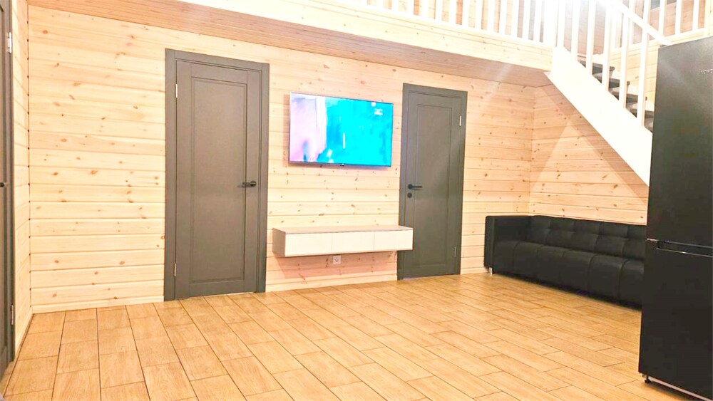 Тёплая сауна с нефритовыми камнями включена в стоимость. Индивидуальный комфорт на персональной закрытой территории. Теплая купель работает в сезон с апреля по октябрь. Тёплая купель на террасе с подводной и красивой ночной подсветкой, круглосуточно теплая и с пузырьками как в джакузи. Платная опция. В сезон, когда купель не работает, наши гости могут посетить частную платную баню с небольшим теплым бассейном с видом на залив в 5 минутах от дома. Купель начинает работать весной в конце апреля - 1 мая.