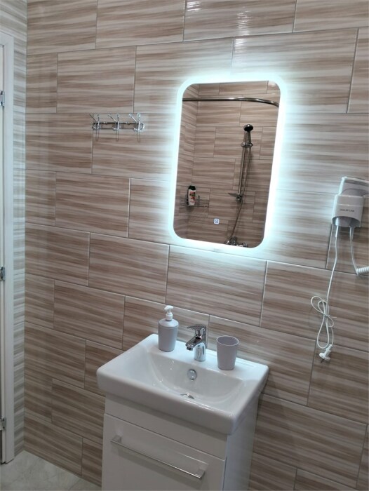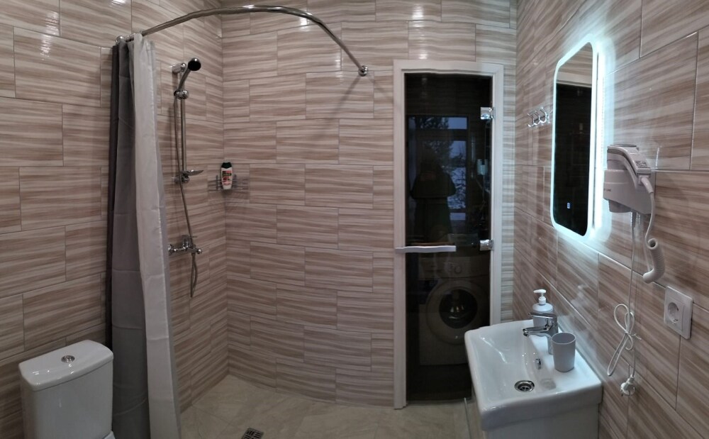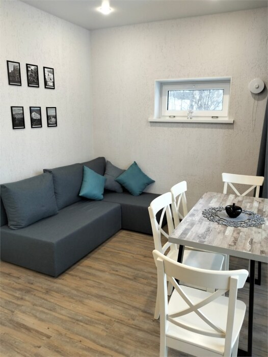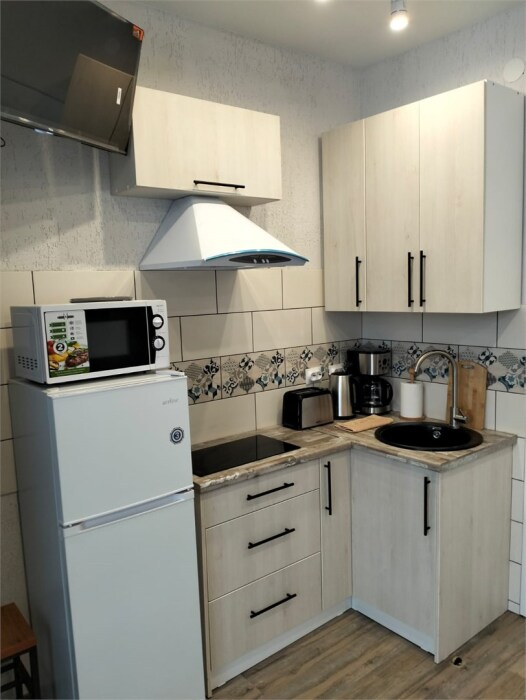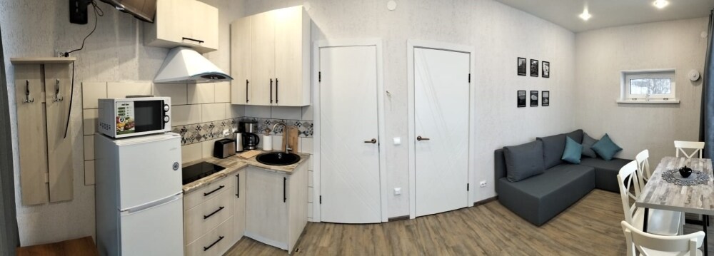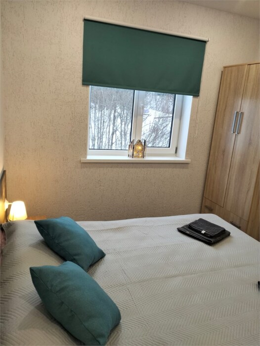 - 1 спальня и лофт, полностью оборудованная кухня-гостиная, туалет, душ, телевизор, холодильник, микроволновая печь, посудомоечная машина, стиральная машина, чайник, кофеварка, тостер, утюг. Есть вся посуда.