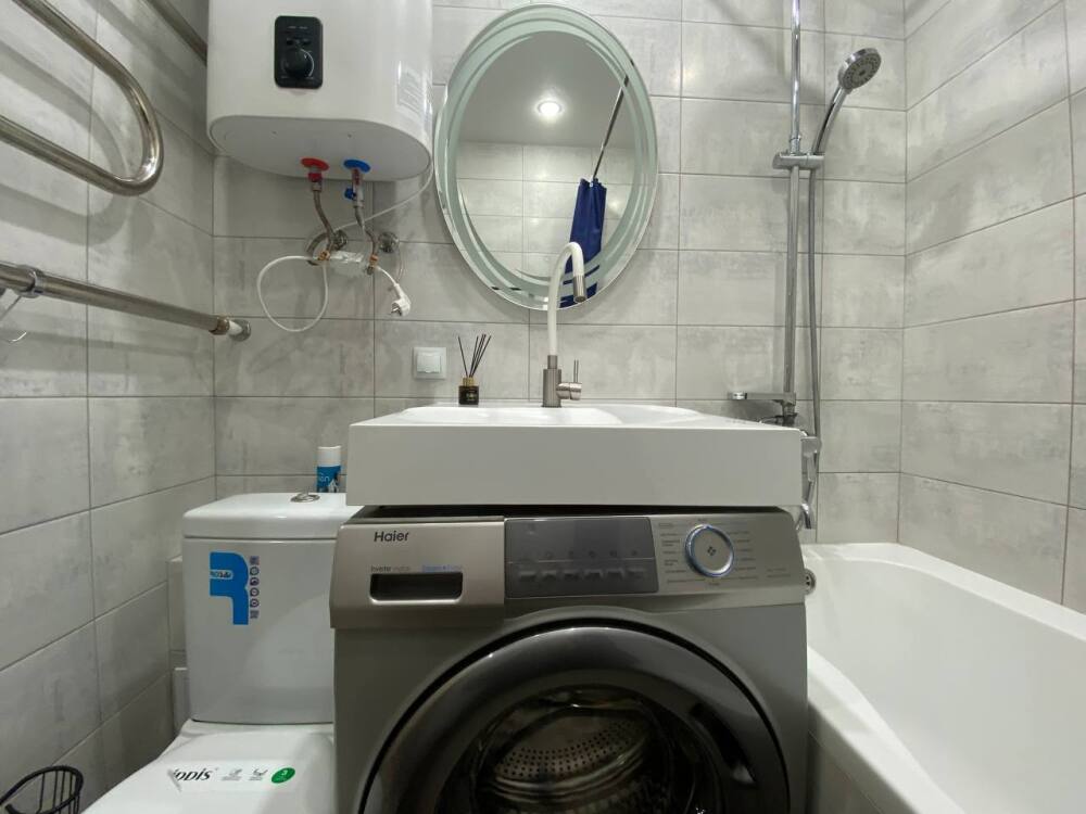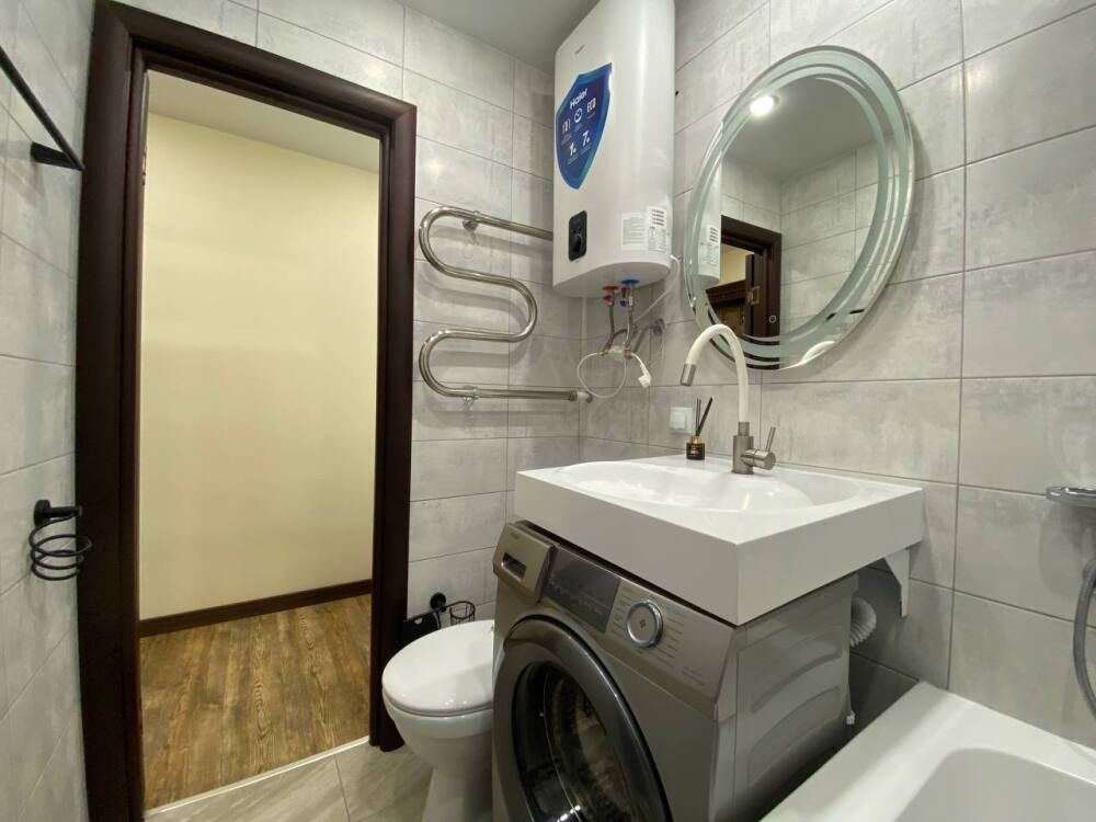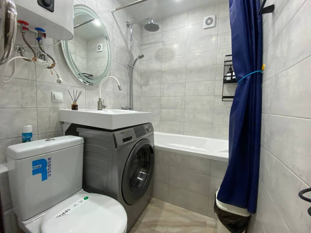- Ванная комната с гелем для душа, шампунем, зубной пастой.