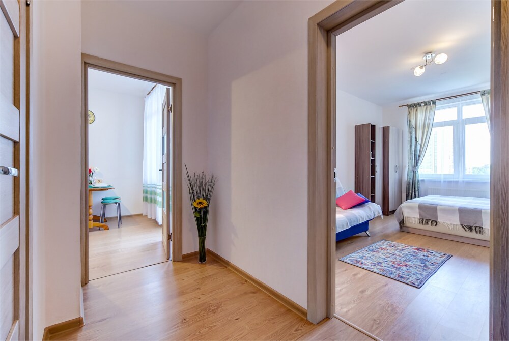 Мы предлагаем удобное бесконтактное заселение. До прибытия в квартиру подписывается электронный договор и оплачивается проживание. Далее вам будут направлены коды доступа от квартиры.