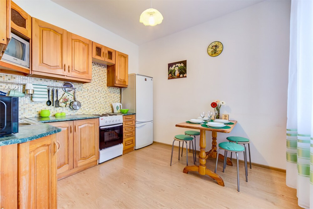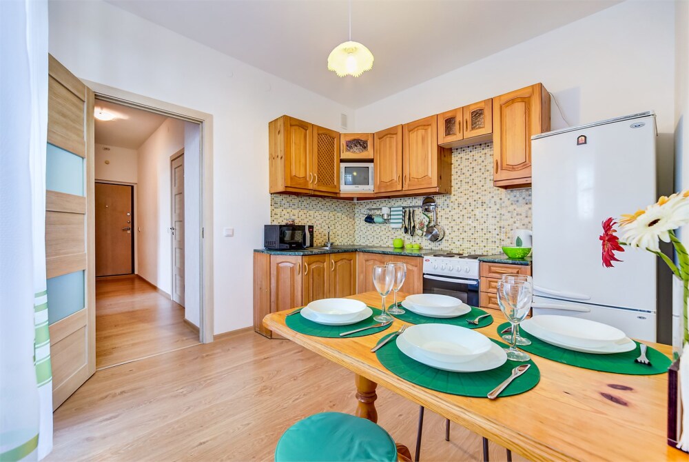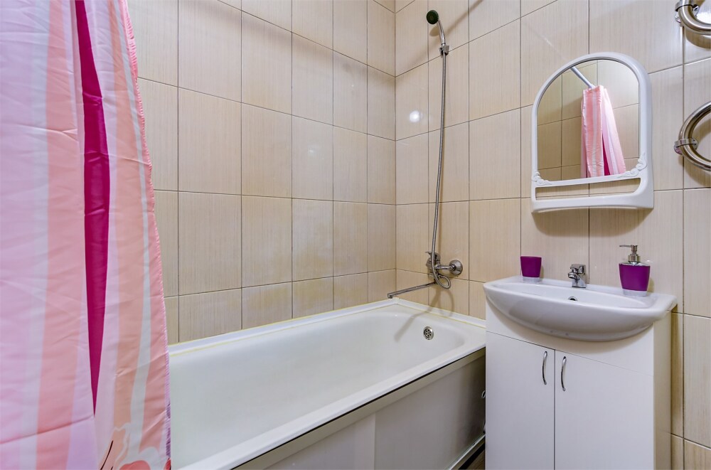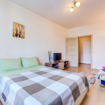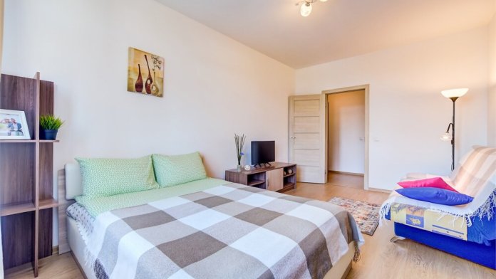 Ощутите истинный комфорт в очаровательной однокомнатной квартире с удобной двуспальной кроватью и комфортным двуспальным диваном. Квартира находится в экологически чистом районе. Рядом расположен торговый центр «Жемчужная плаза», где можно приобрести все необходимые товары. Благодаря бесплатной парковке во дворе дома, можно не беспокоиться о поиске места для автомобиля. Отличное сочетание комфорта и практичности.