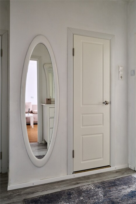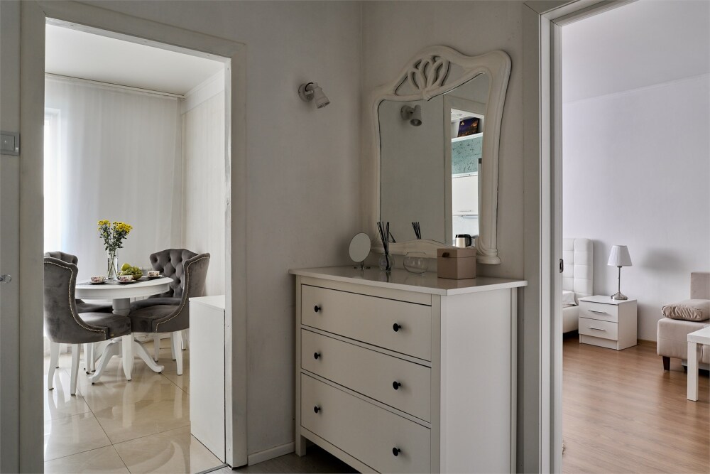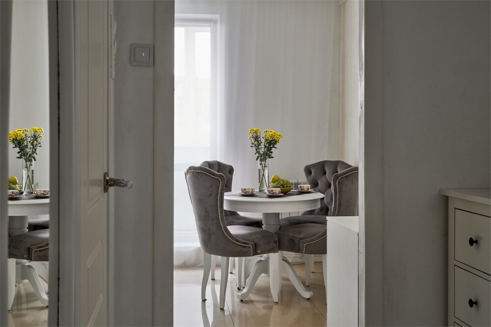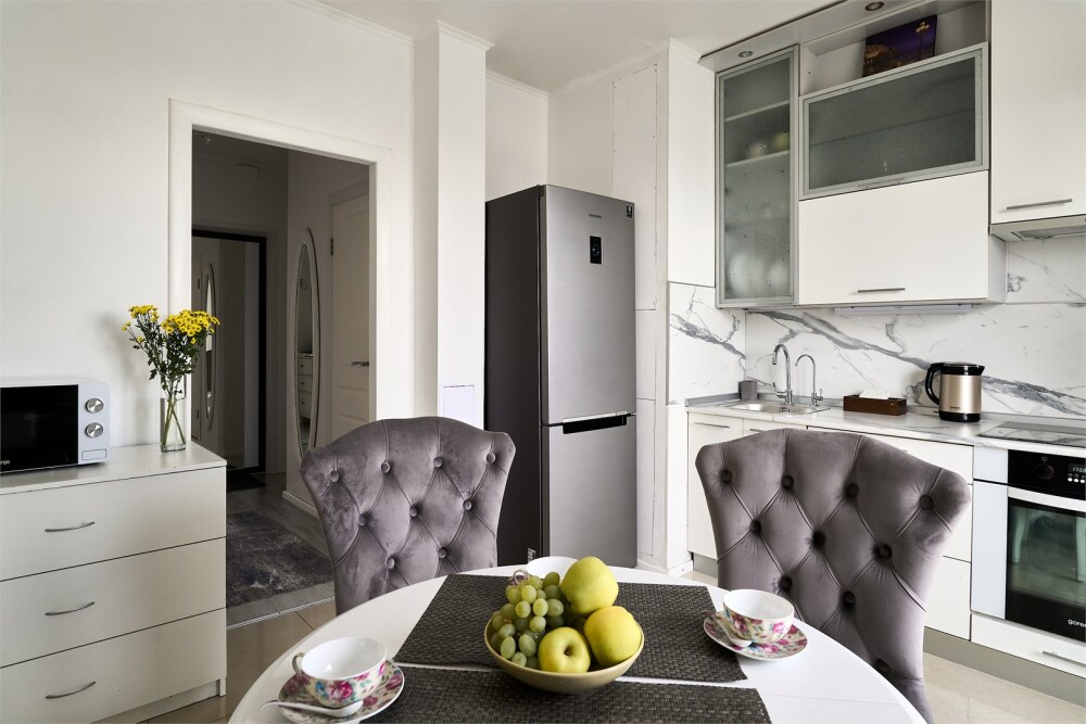 Однокомнатная квартира расположена в одном из самых экологически чистом районе города Санкт-Петербурга. Вы сможете дышать свежим морским воздухом и наслаждаться красивыми видами. В апартаментах есть круглый стол на кухне для приятных семейных ужинов. Высокий этаж и просторная кровать кинг-сайз обеспечат вам спокойный и комфортный сон, а вместительный шкаф и смарт ТВ позаботятся о вашем комфортном пребывании. Ваша идеальная квартира ждет вас уже сейчас.
