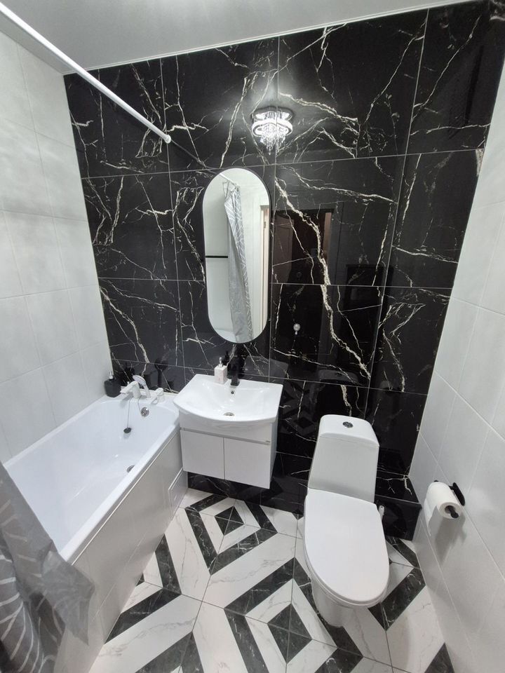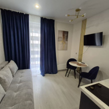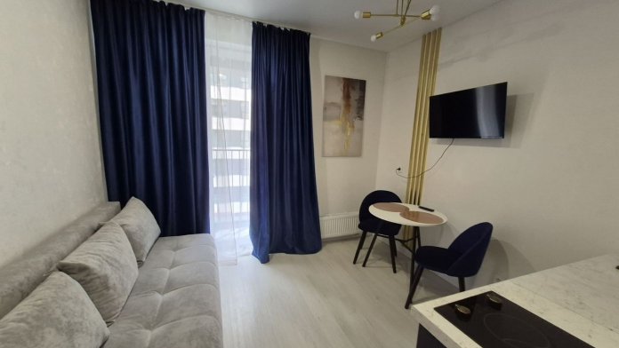 Внутри Вас ждёт уютная гостиная зона с удобным диваном и телевизором. Просторная кухня оснащена всей необходимой техникой: холодильник, плита, микроволновая печь и чайник. Из окон открывается вид на улицу, а балкон предоставляет дополнительное пространство для отдыха. Санузел выполнен в современном стиле с мраморной плиткой и ванной. В наличии все средства гигиены. Гоpячaя вода бeз отключения - уcтановлен водoнагpеватель.