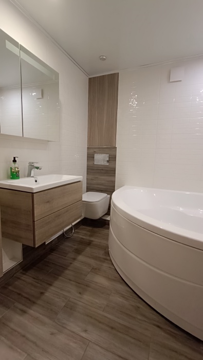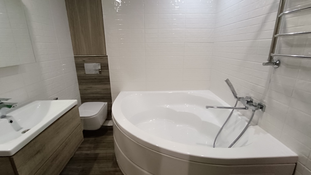 Ванная - как в спа-отеле: угловая, с мощным душем и мягкими полотенцами.