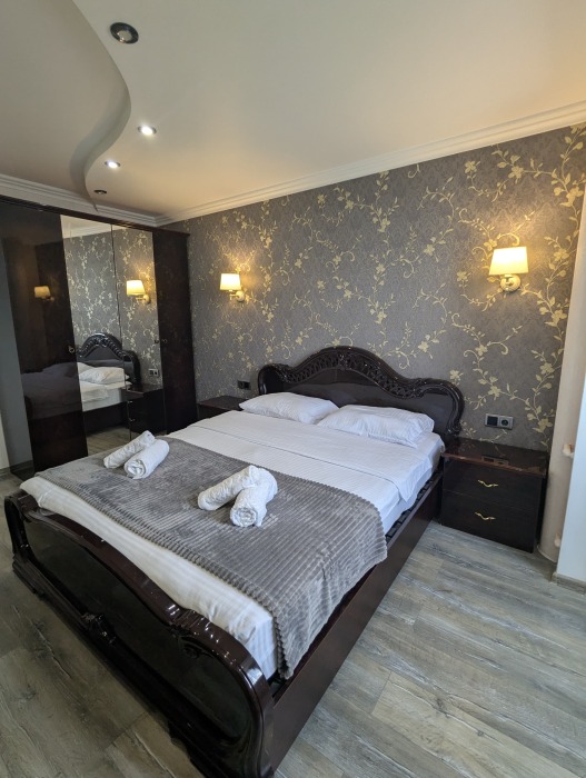 ️2 отдельные спальни с двуспальными кроватями, диван в гостиной. Вместим до 6 гостей- никто не будет спать «на чемоданах»!