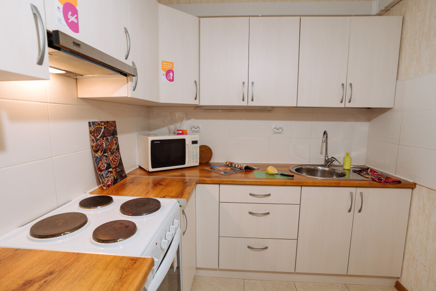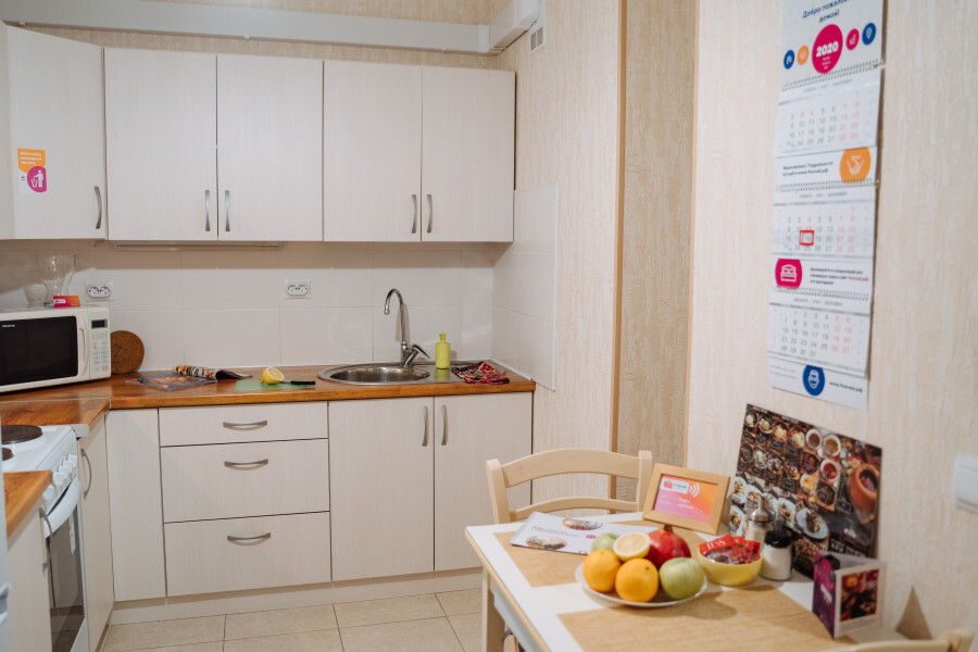 Апартаменты оборудованы всей необходимой техникой, мебелью и посудой для комфортного проживания, свежее белье и махровые полотенца сделают ваше пребывание в наших апартаментах еще приятнее, а высокоскоростной Wi-fi и спутниковое телевидение позволят вам в любое время оставаться на связи.