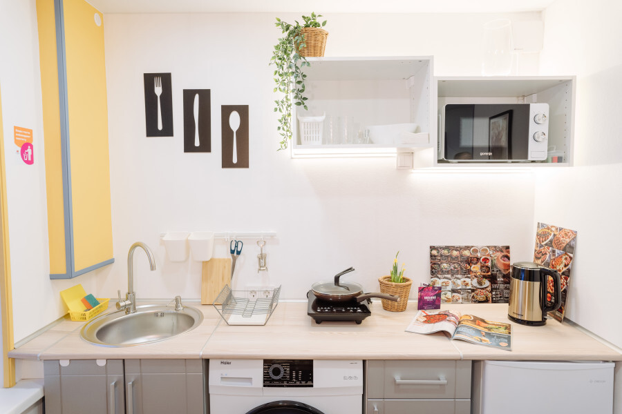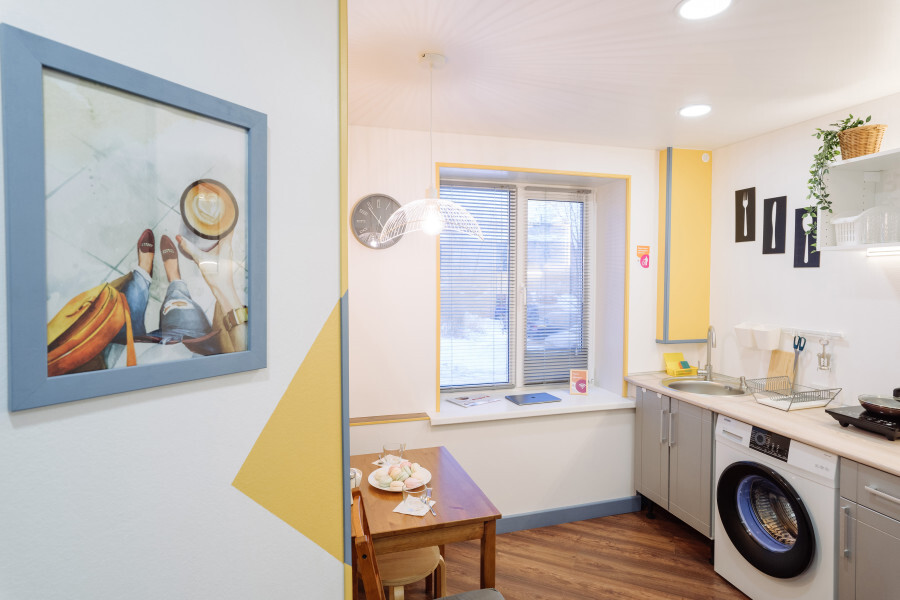 Апартаменты включают в себя клининг, современную мебель, бытовую технику, свежее бельё и посуду. Гигиенические принадлежности и полотенца предоставляются каждому гостю. Рассчитаны для 2-х и 3-х гостей.