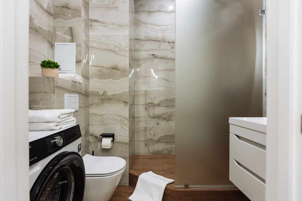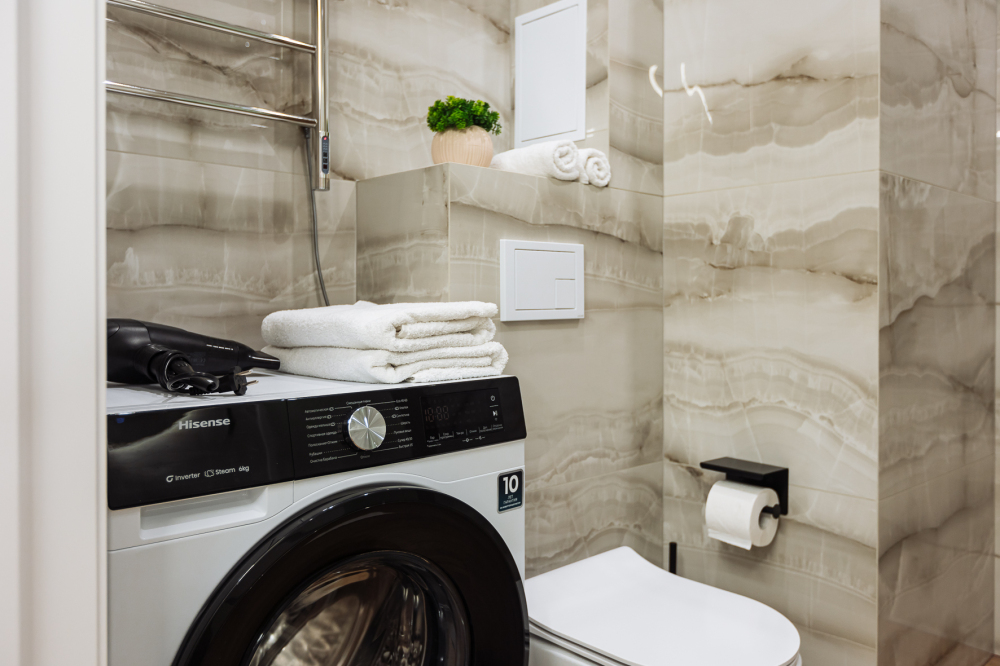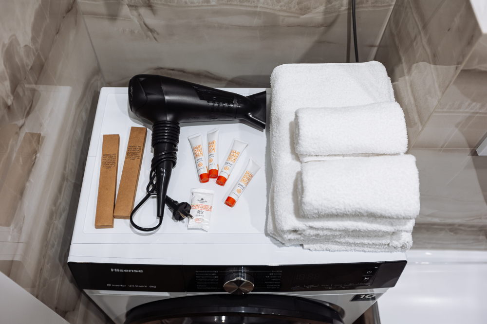 -️ Для комфортного пребывания дополнительно мы предоставляем тапочки, приветственный гигиенический набор (шампунь, гель для душа, зубная щетка с пастой), фен, утюг, стиральную машину, кондиционер;