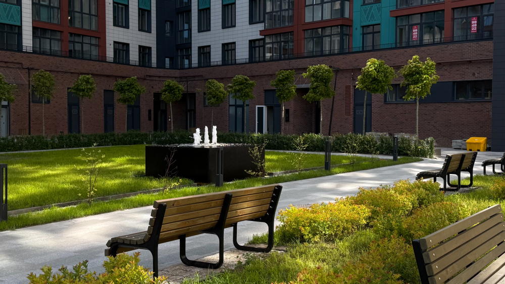 ️Во дворе зеленая зона с фонтаном и детская площадка.
