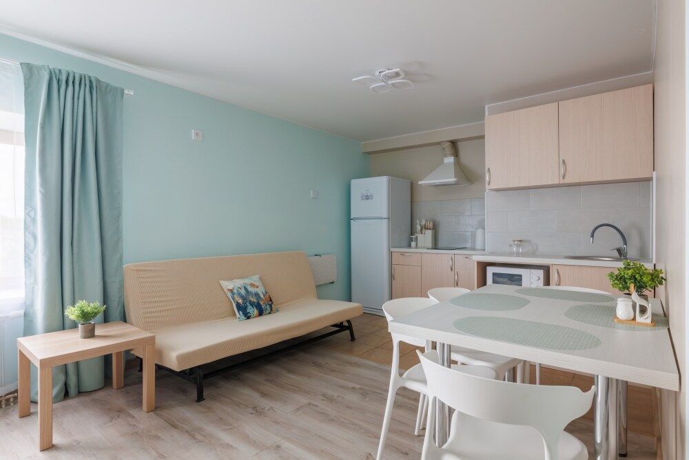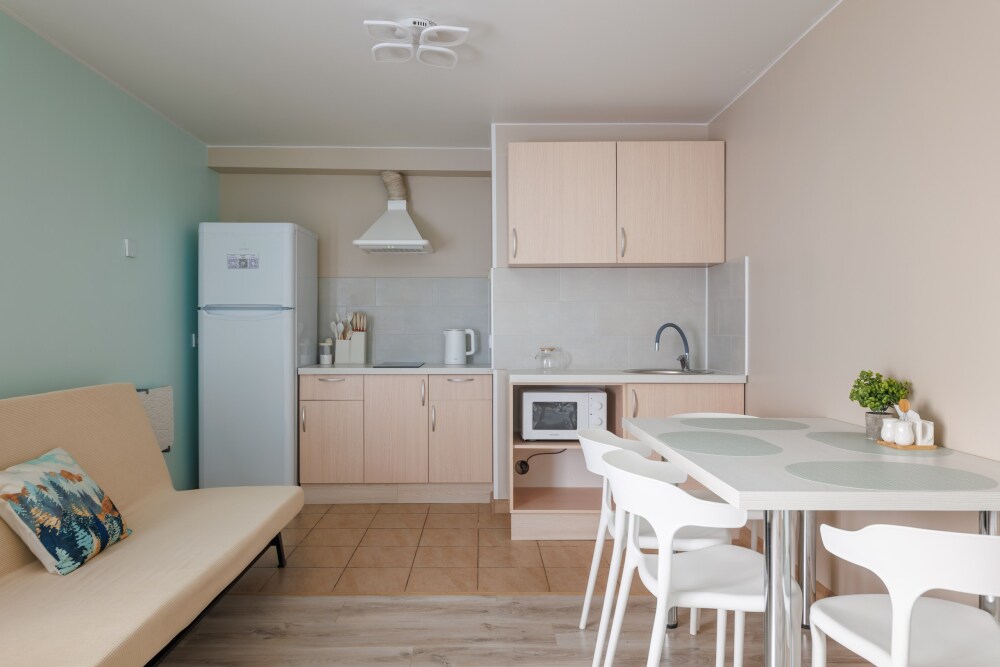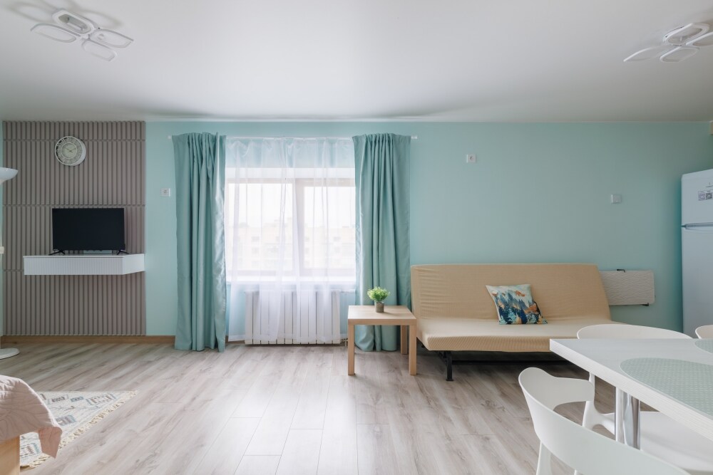 Пространство продумано до мелочей, чтобы обеспечить максимальный комфорт и функциональность вашего пребывания в наших апартаментах.
