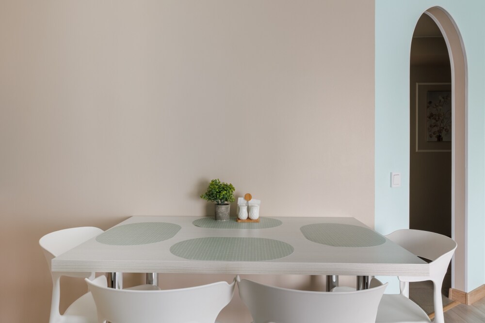 Светлые тона интерьера и окна наполняют помещение естественным светом, создавая атмосферу уюта и спокойствия.