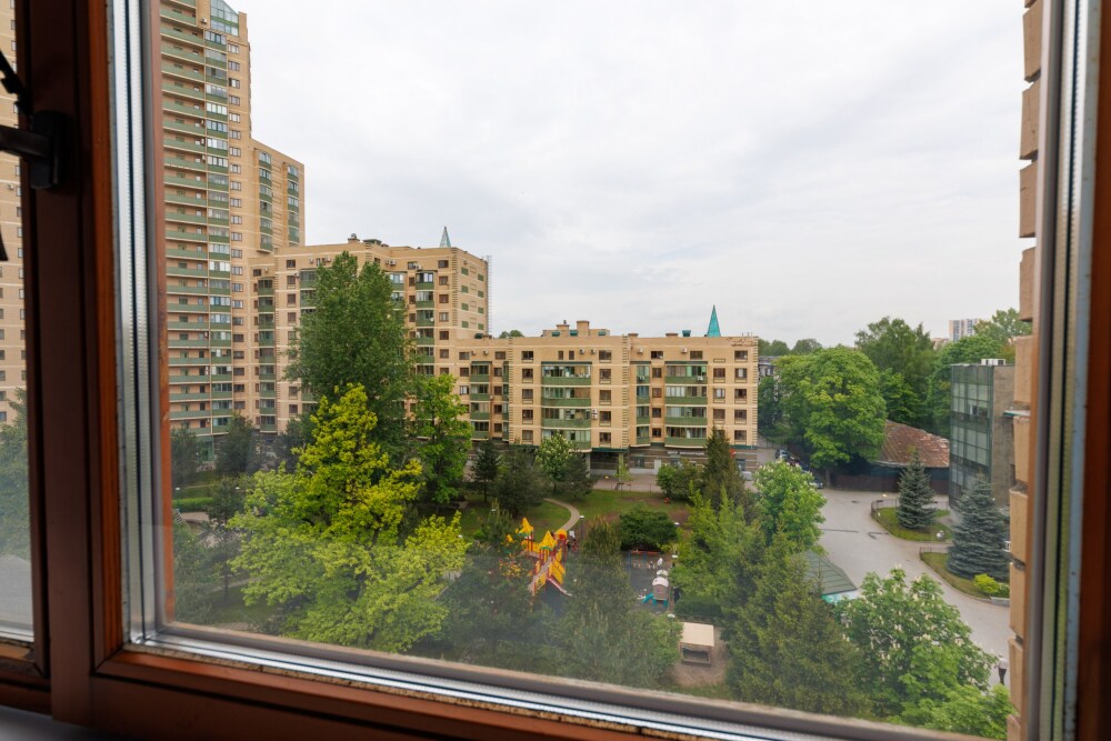 Зона отдыха включает в себя комфортный диван и телевизор, за просмотром которого Вы сможете расслабиться после приятных прогулок в Удельном парке.