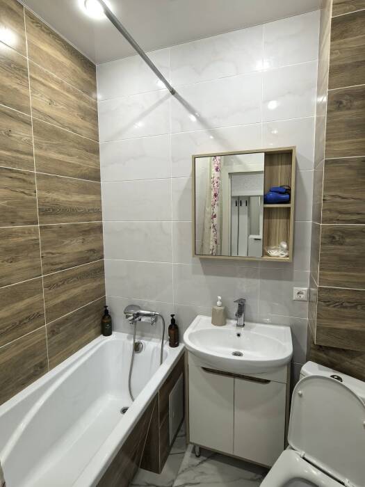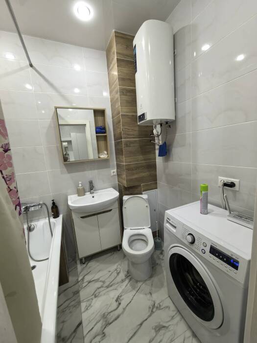 Оснащение: постельное бельё, ортопедический матрас и подушки, стиральная машина, беспроводной интернет Wi-Fi, кондиционер, центральное отопление, водонагреватель, шторы блэкаут.