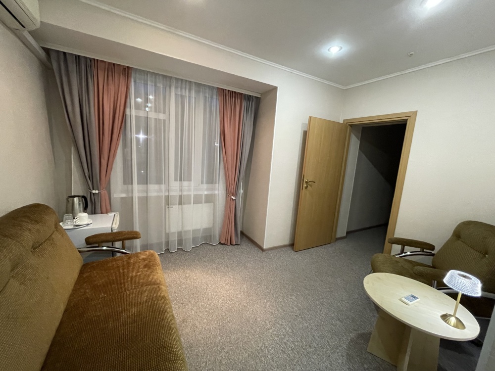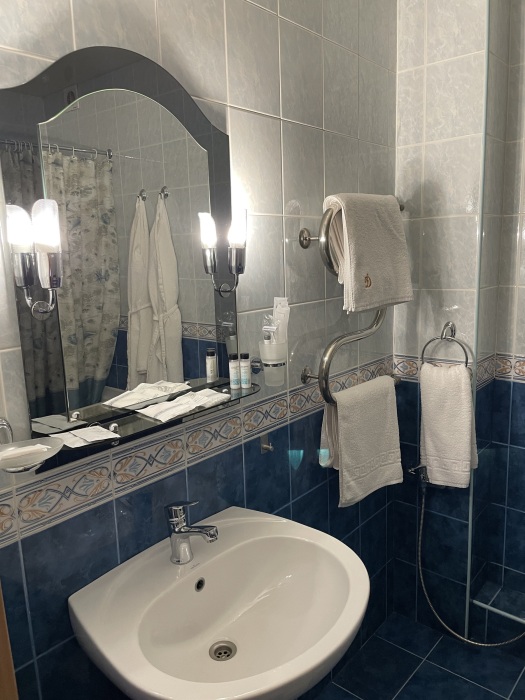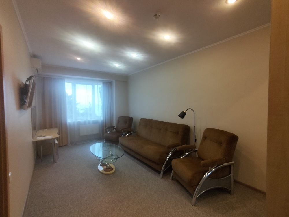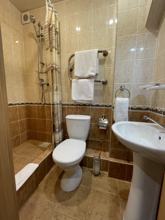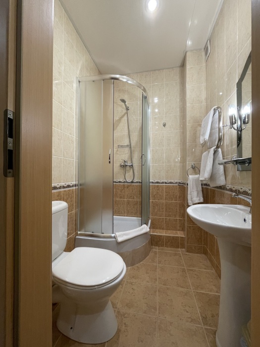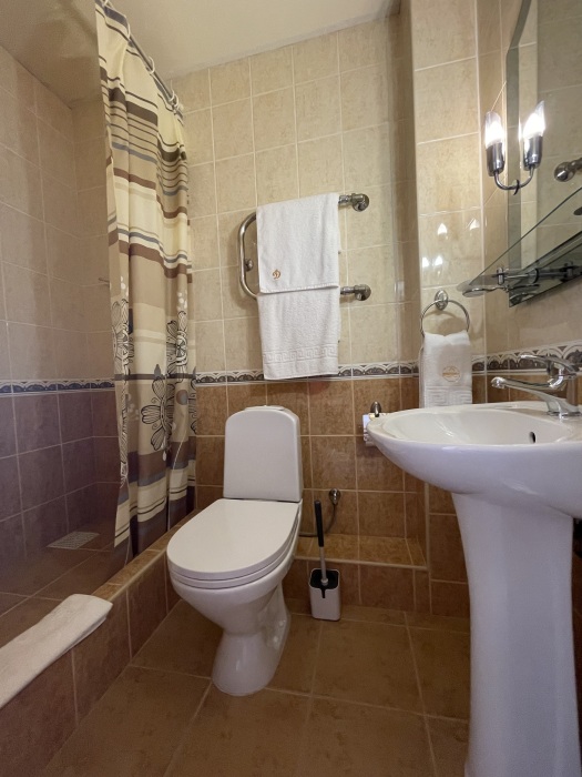 Комфортабельный однокомнатный номер с одной двухспальной кроватью или двумя односпальными. Номер с видом на море и парк отеля. В номере есть кресло, столик для телевизора, столик с зеркалом, бельевой шкаф-прихожая, кондиционер, прикроватные тумбочки и светильники. Полноценный санузел, гигиенические принадлежности. В коридоре кулер с горячей и охлажденной водой, микроволновая печь, гладильная доска и утюг.