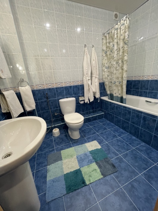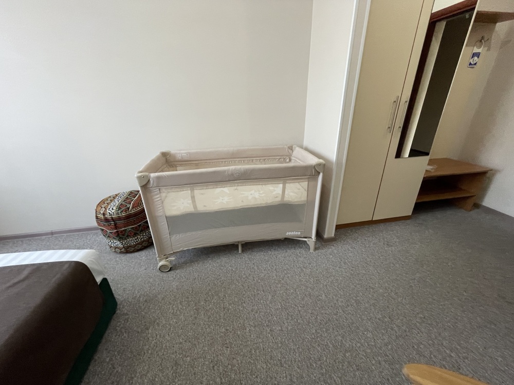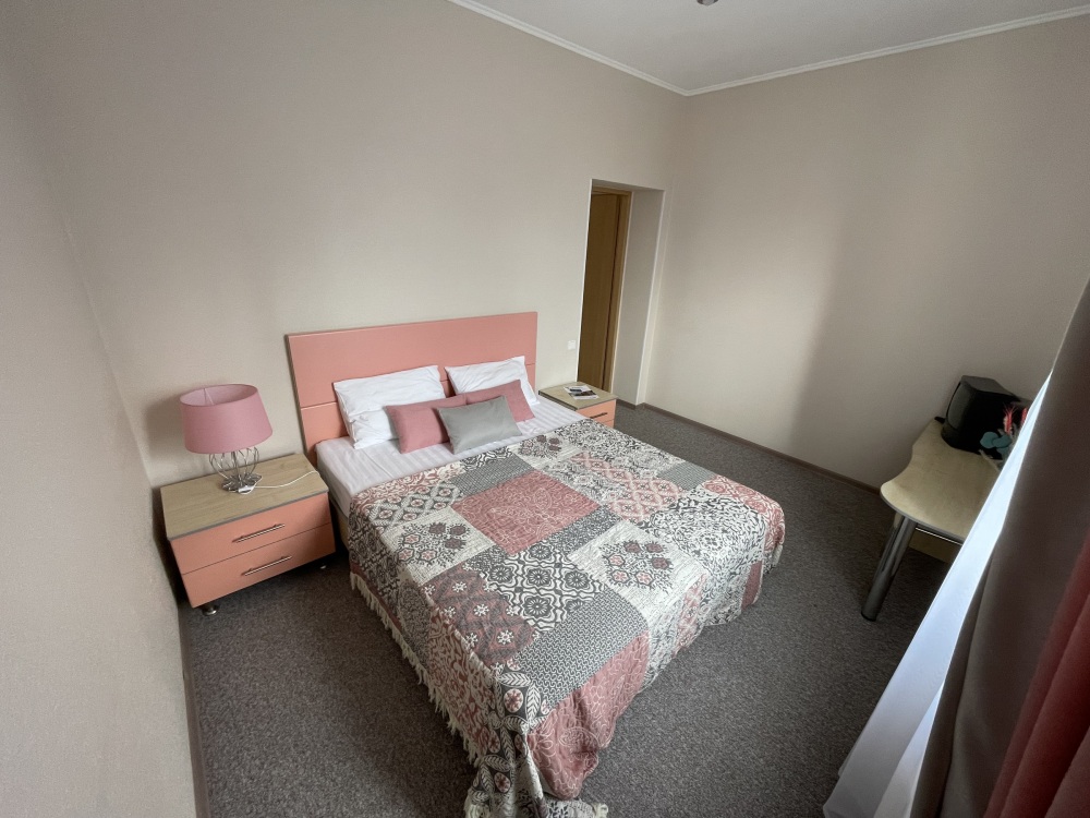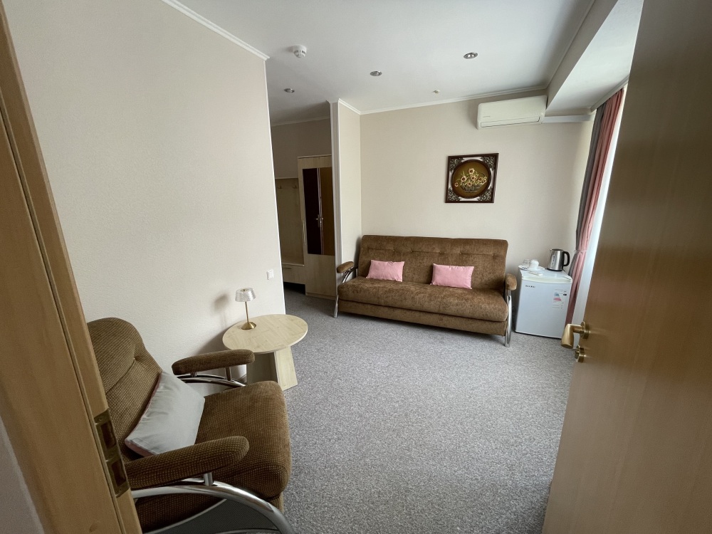 Просторный номер с двумя комнатами, идеальный для проживания вместе с семьей или друзьями на берегу моря. В каждой комнате платяной шкаф, телевизор, мини-холодильник.