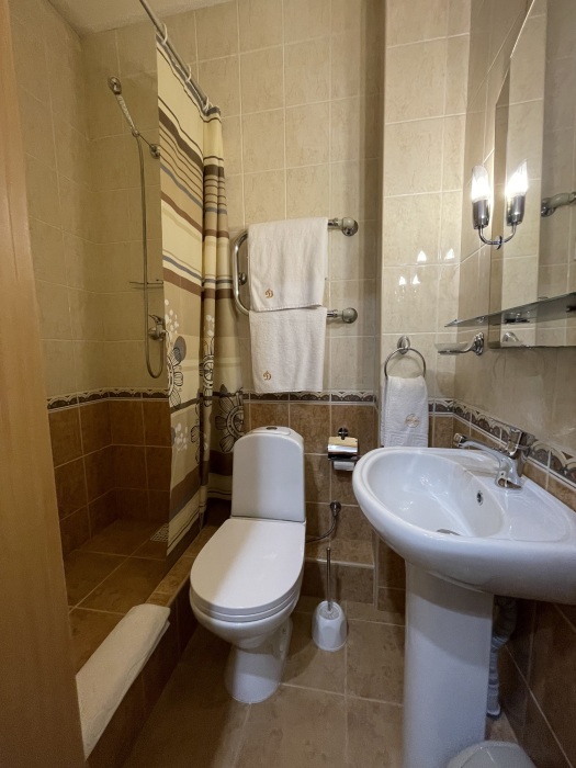 Стандартные номера с двуспальной кроватью, с двумя кроватями, семейные двухкомнатные номера для родителей с детьми или друзей (в каждой комнате по два спальных места), люкс и полулюкс готовы к Вашему отдыху. Отель с грузинским акцентом. Вы можете выбрать номер в цвете одной из пряных специй и трав, которые щедро используют в блюдах Грузии, а также почувствовать их яркий и свежий аромат в блюдах грузинской кухни в ресторане «ВажБатони».