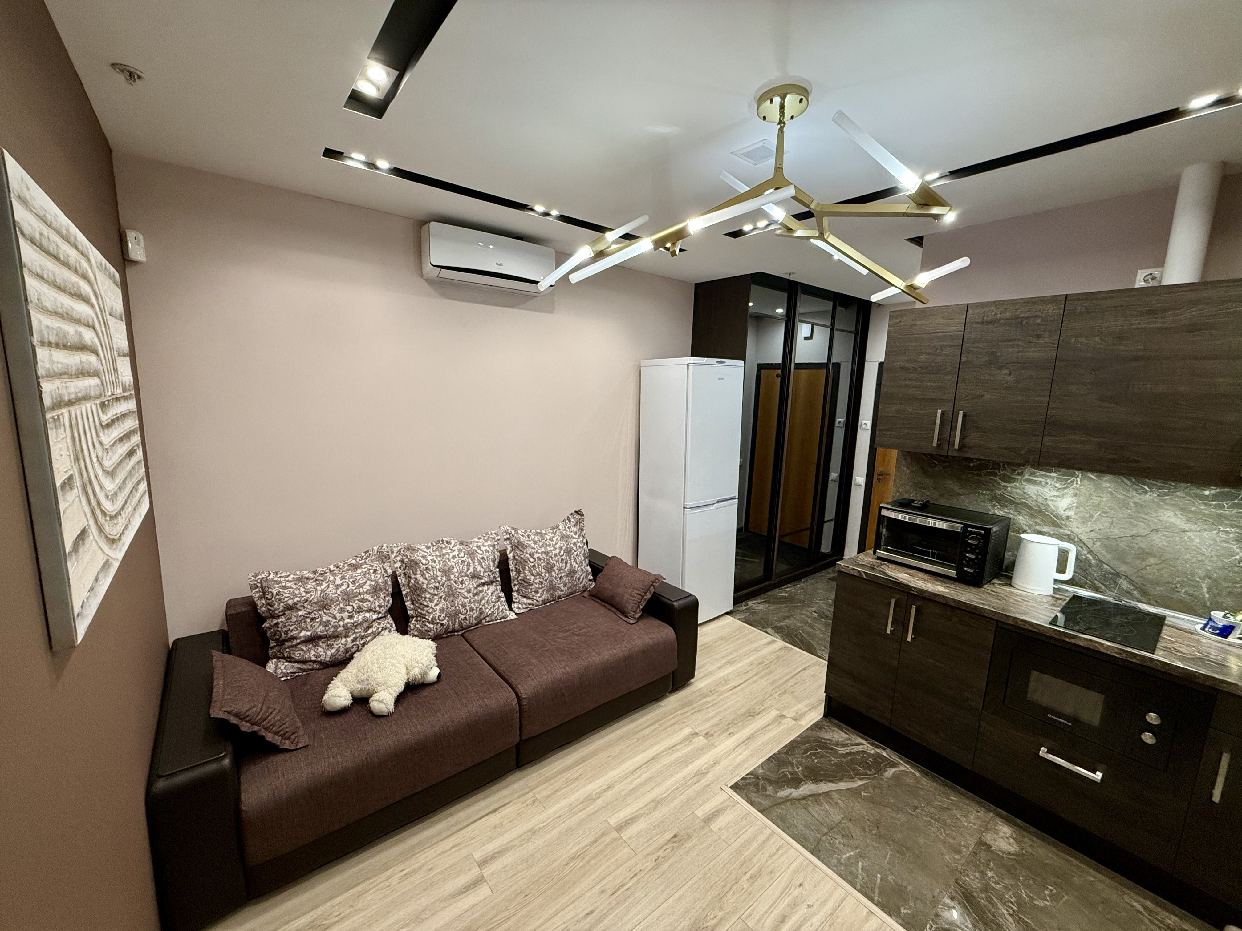 - Гостиная: диван для 2 гостей раскладывается.
