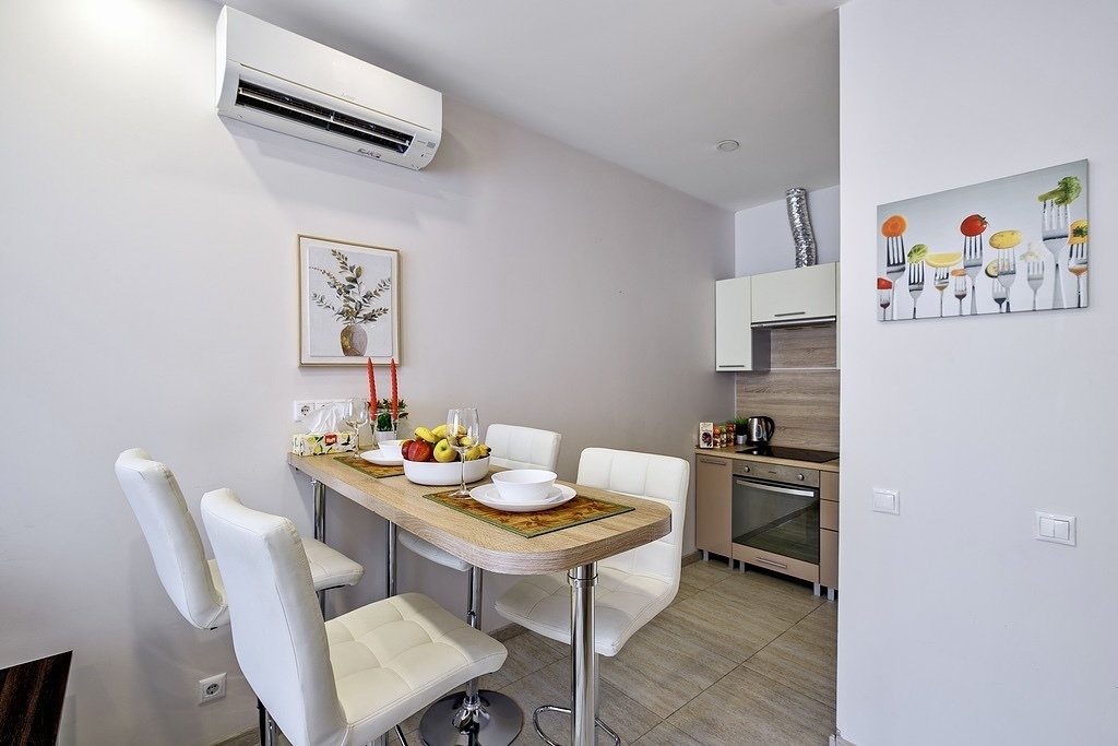 - Новые мощные кондиционеры с ежегодным обслуживанием. Летом - свежо и прохладно даже в самые жаркие дни. Зимой - тепло и уютно.