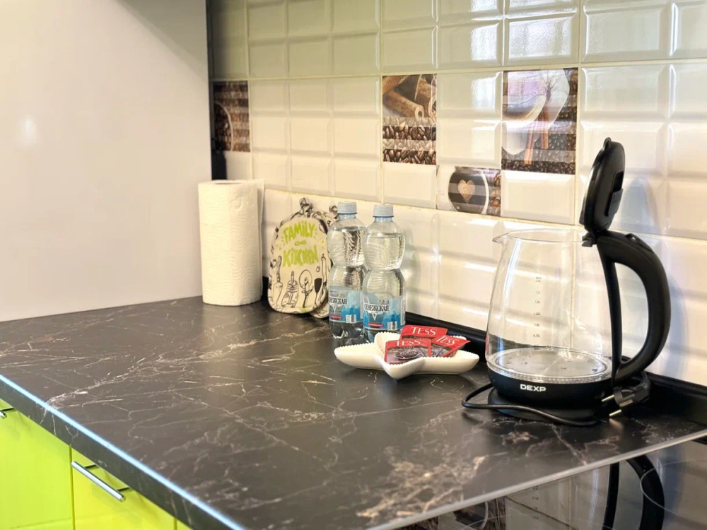 - оборудованная кухня (холодильник, индукционная плита, микроволновая печь, электрочайник, фильтр для очистки воды);