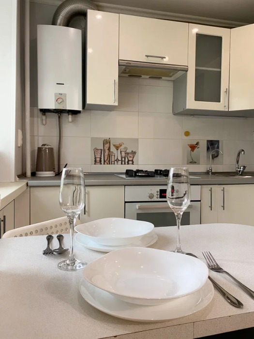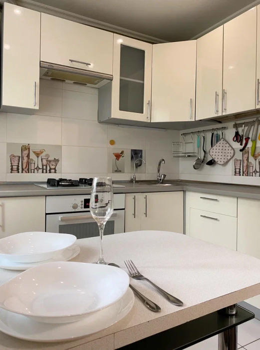 - Оборудованная кухня (холодильник, плита, микроволновая печь, электрочайник, газовая колонка)