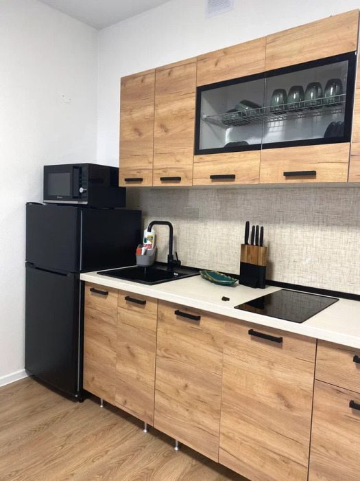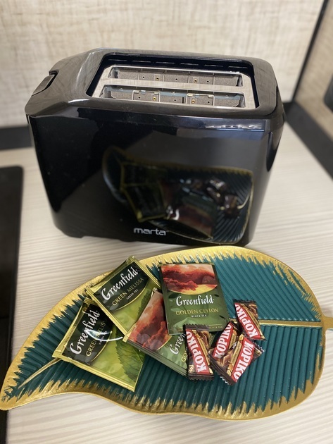- Оборудованная кухня (холодильник, плита, микроволновая печь, электрочайник, тостер)