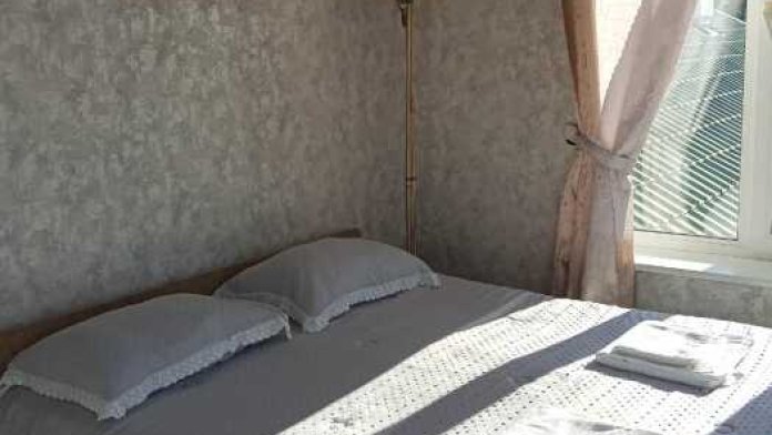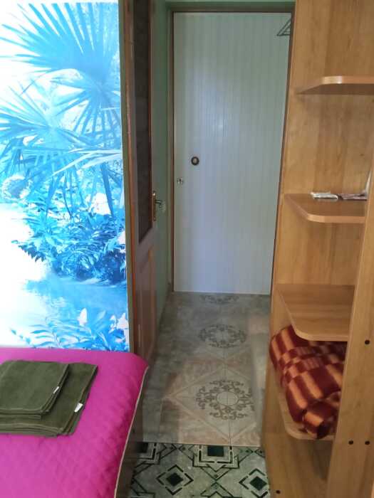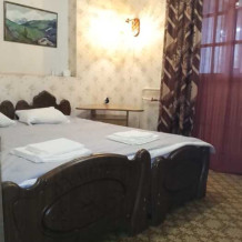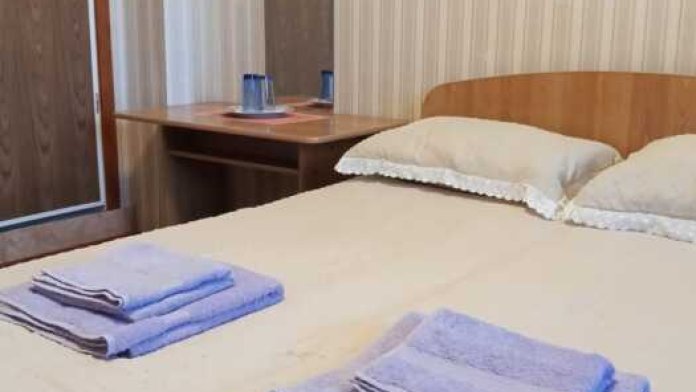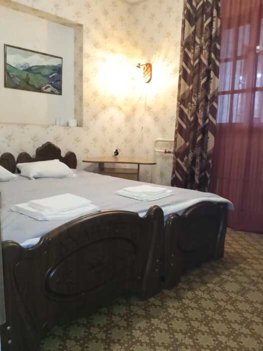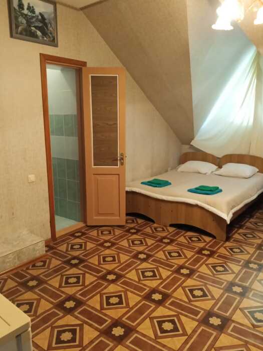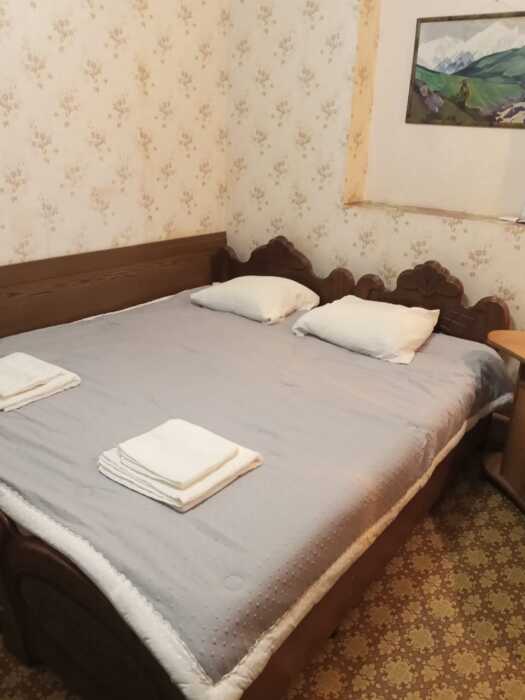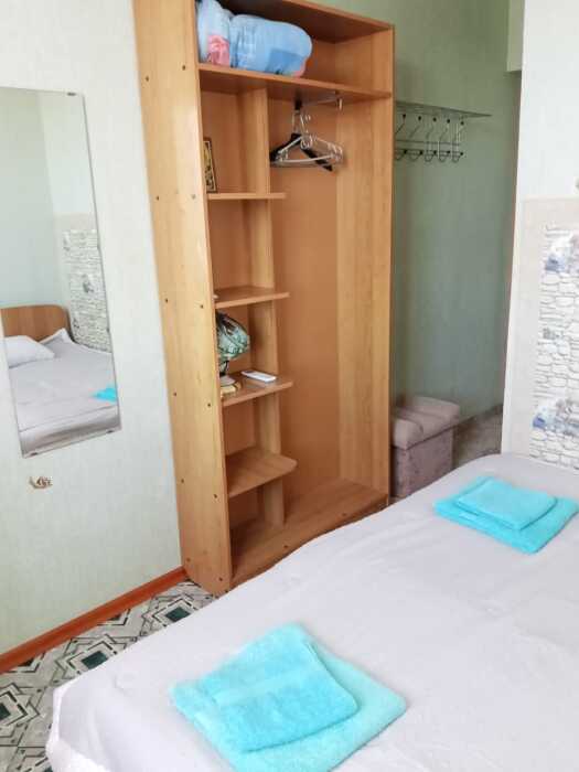 Номер оборудован: 2 спальная кровать, телевизор, шифоньер, вентилятор, стол, пуфики, посуда, туалетные принадлежности.