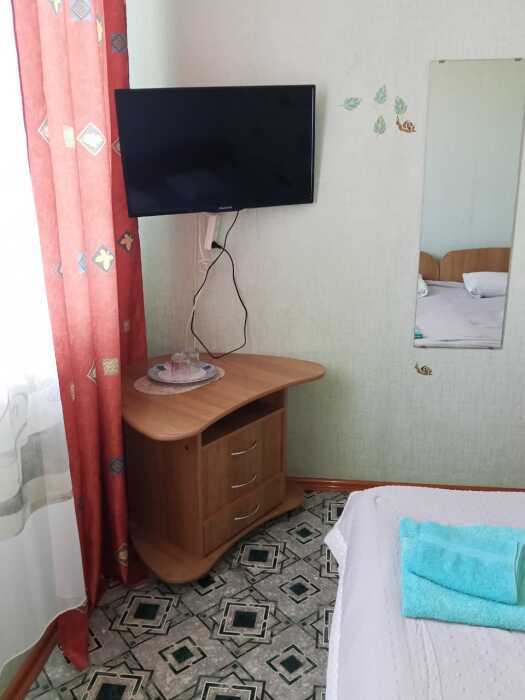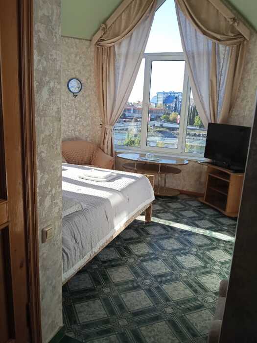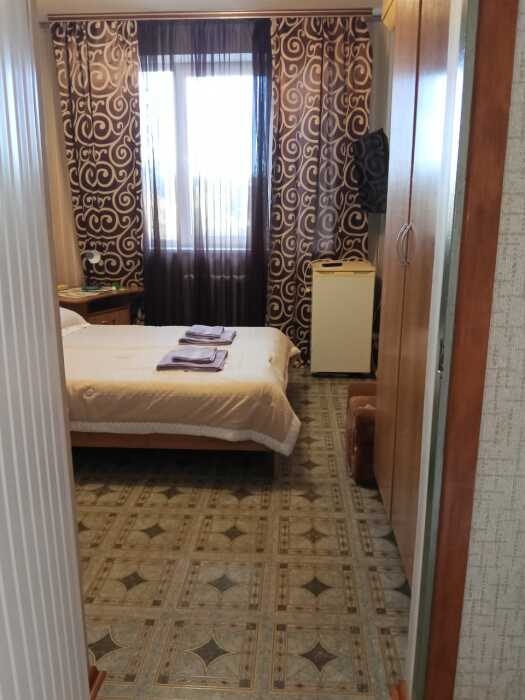 Номер оборудован: 2-спальная кровать, телевизор, холодильник, сплит-система, шифоньер, стол, пуфики, посуда, чайник, фен, душ, санузел, туалетные принадлежности.