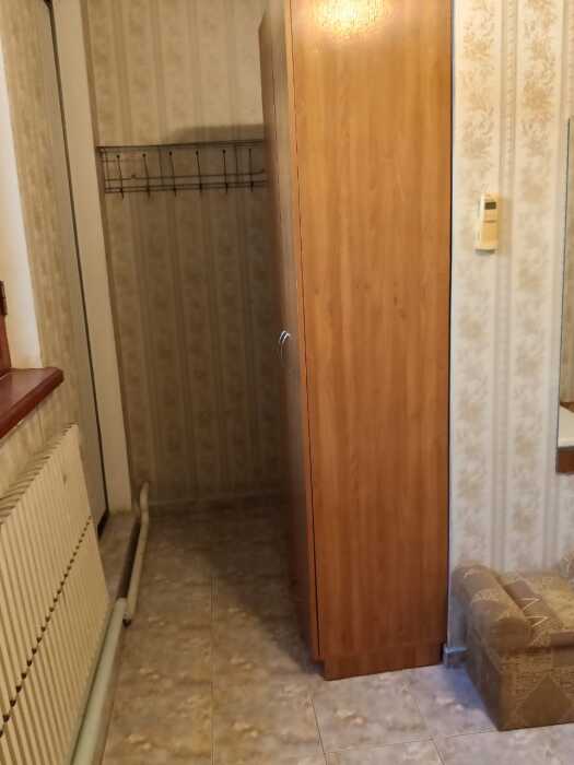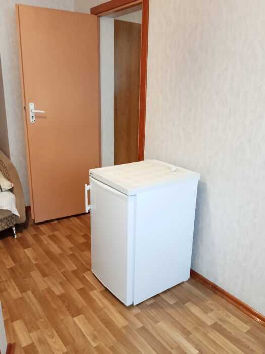 Сразу за дверью в коридоре находится душ и санузел, холодильник и зона для приема и разогрева пищи.
