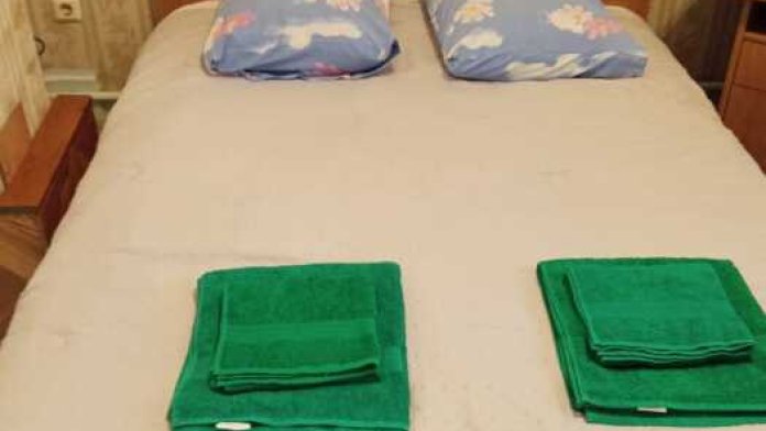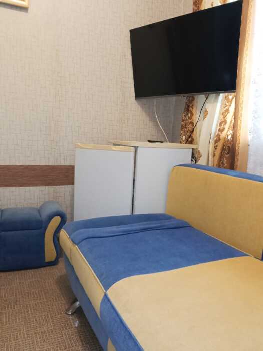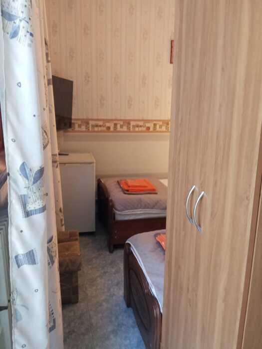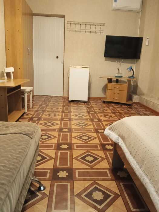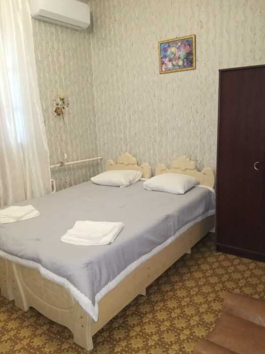 Номер оборудован: 2 раздельные кровати, холодильник, телевизор, сплит-система, стол, пуфики, посуда, шифоньер, душевая, санузел, туалетные принадлежности.