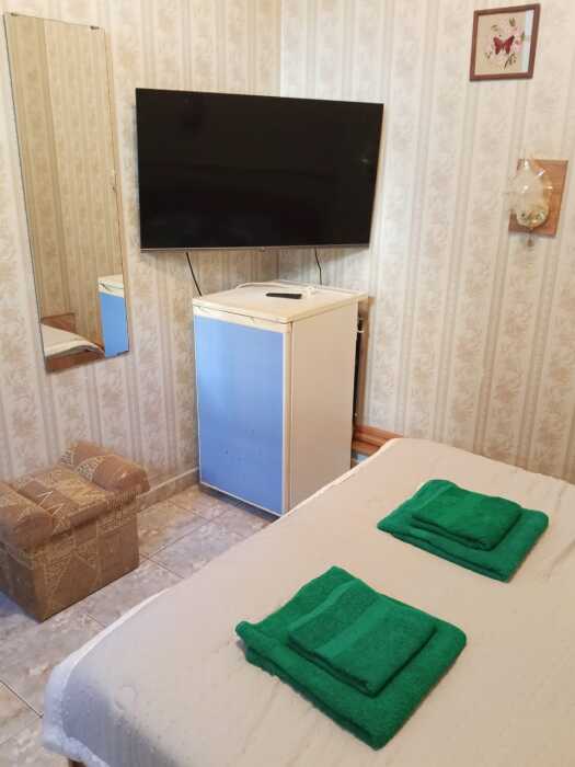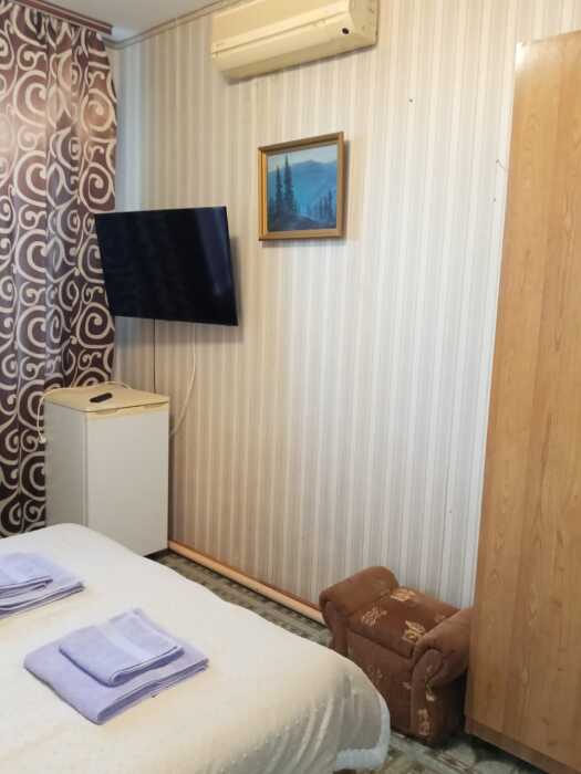 Номер оборудован: 2-спальная кровать, телевизор, холодильник, сплит-система, стол, посуда, пуфики, шифоньер, фен, чайник, душевая, санузел, туалетные принадлежности.