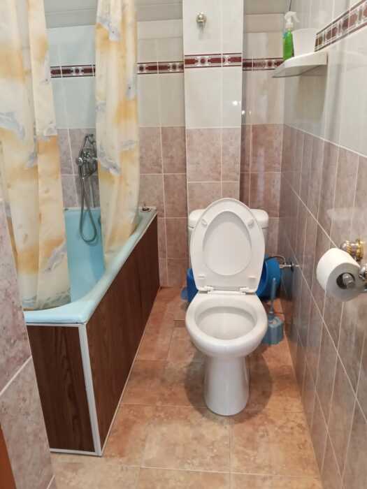 Рядом за дверью находится душевая и еще один санузел .