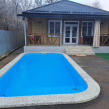 Терраса с большим столом и выходом к бассейну (6×3×1.5, вода 34-38°).