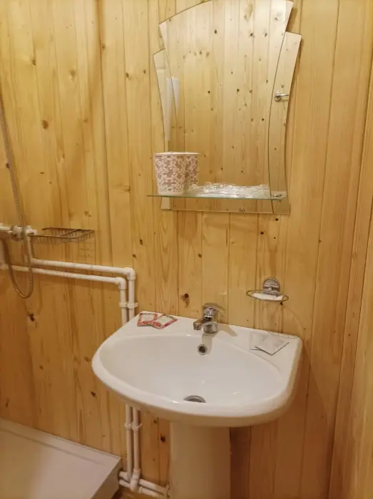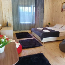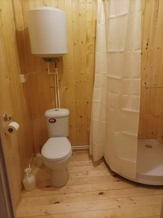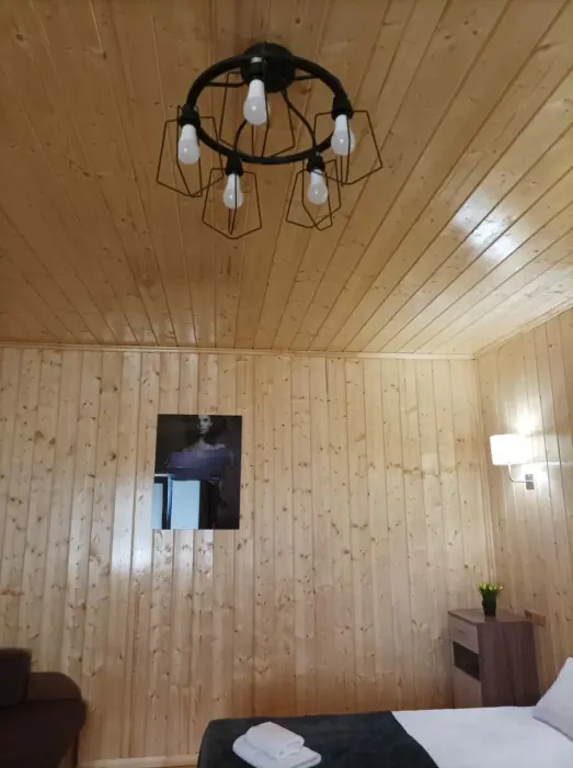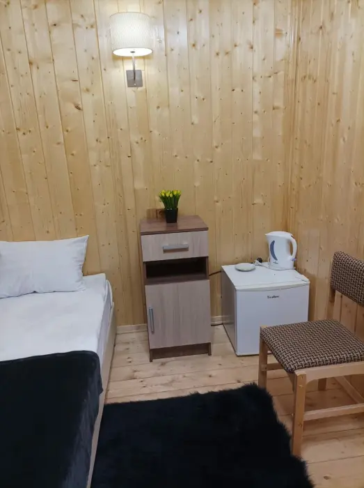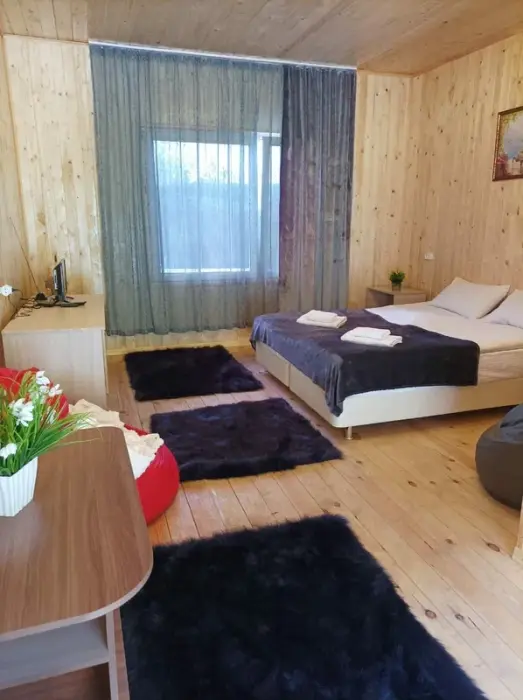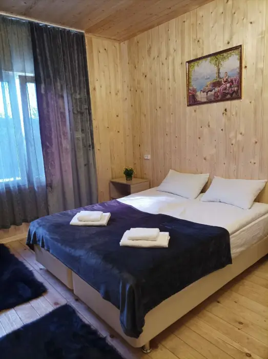 Двухспальная кровать, которую при желании можно разделить на две односпальные. Есть номера с дополнительным третьим спальным местом. Свой отдельный совмещённый санузел. Свой дворик с беседками и мангалом.