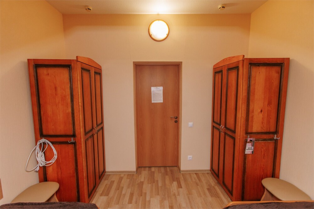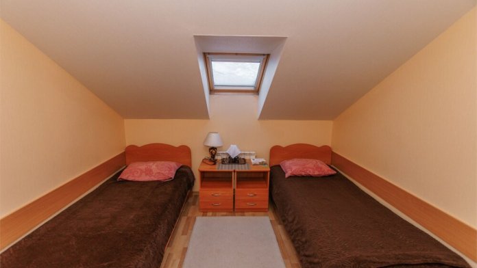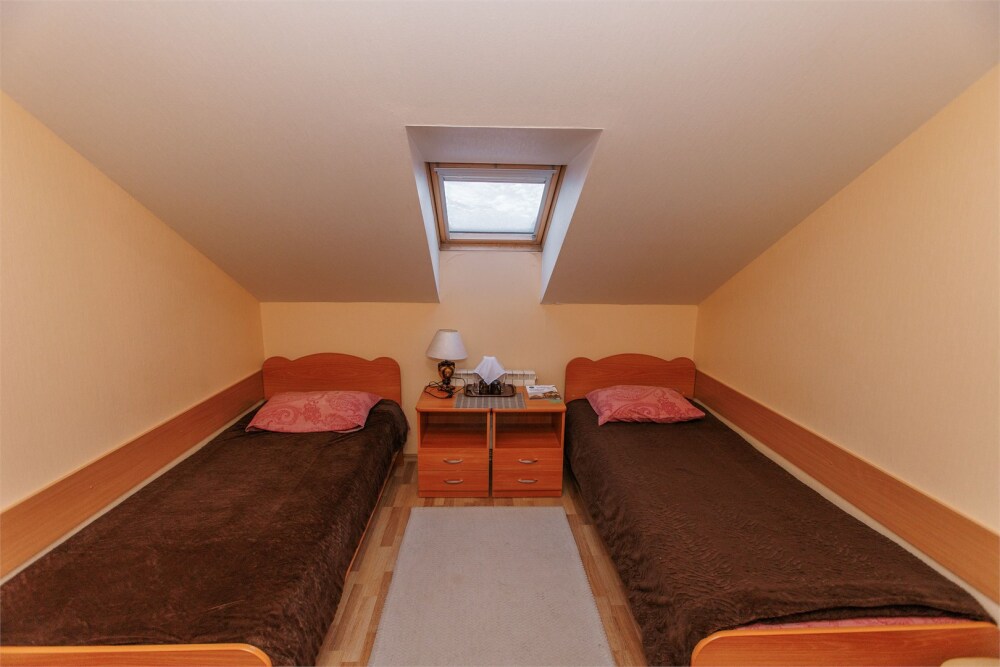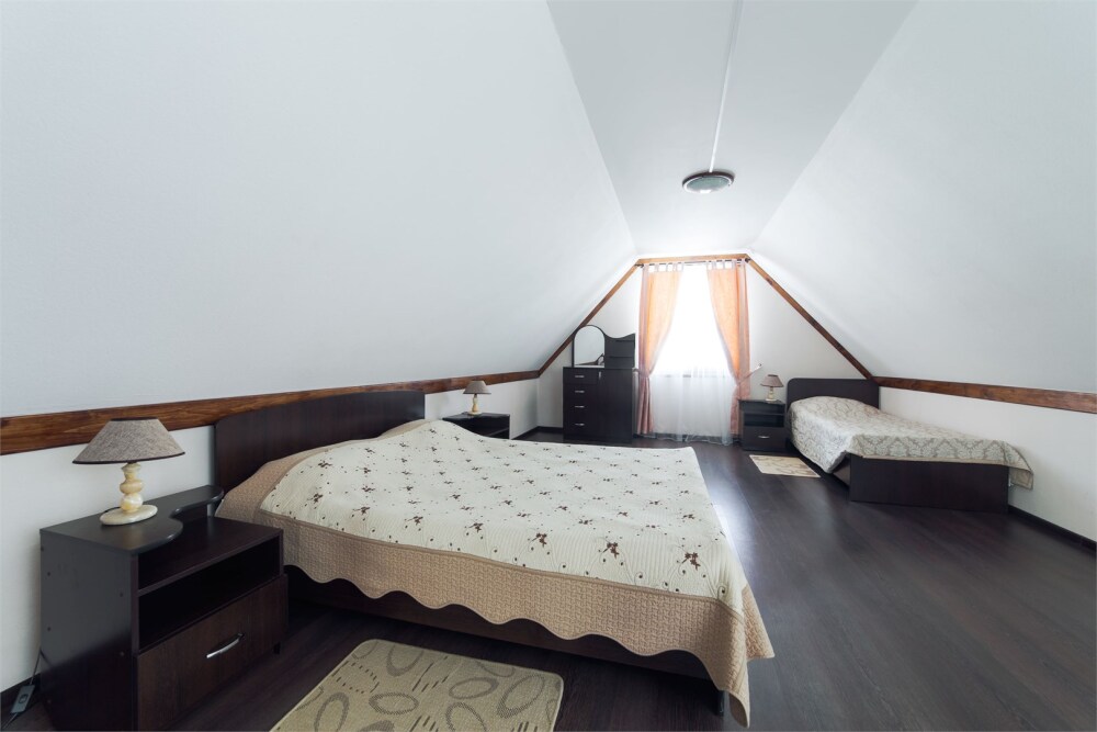 Две спальные комнаты: с двуспальной и двумя односпальными кроватями.