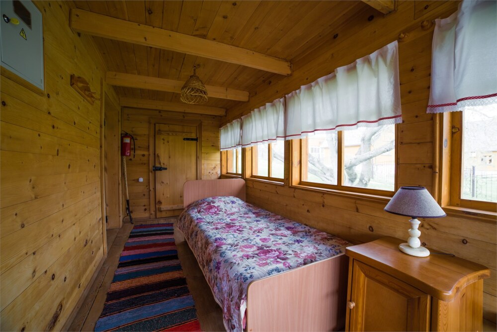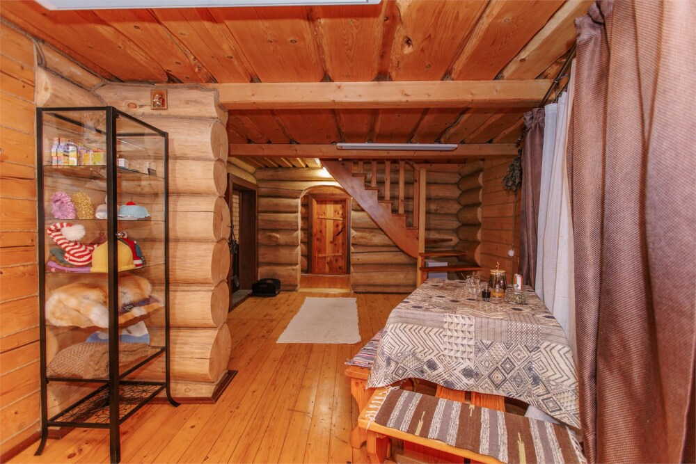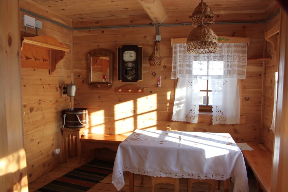 Одноэтажный дом из хвойных пород дерева, в старорусском стиле с печью, которая согревает своим теплом и создает особый уют. Пространство дома разделено на гостиную, спальную комнату и просторные сени.