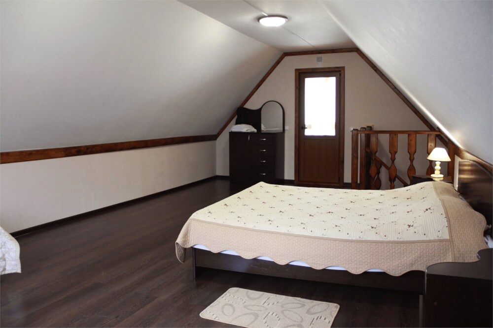 На 2 этаже: спальня с двуспальной кроватью, балконом и ванной комнатой.