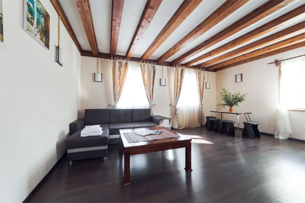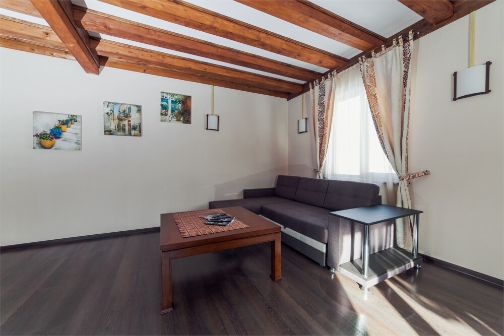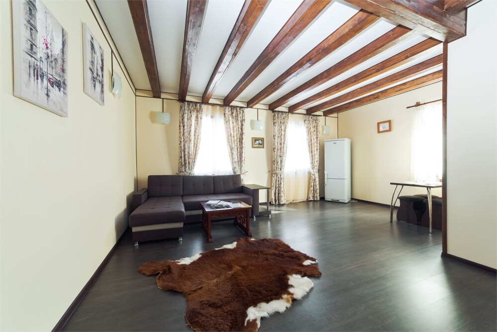 Двухкомнатный, зал-гостинная с камином и мягкой мебелью.