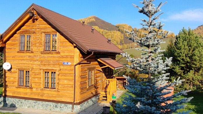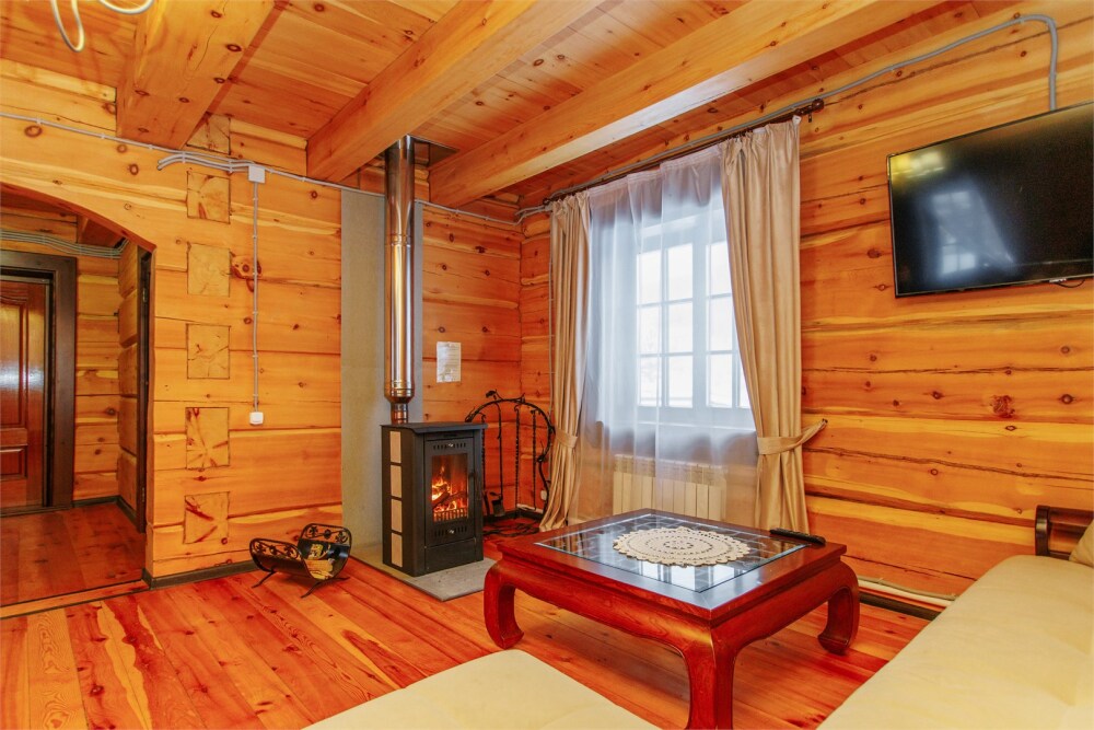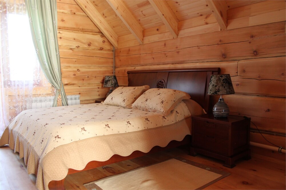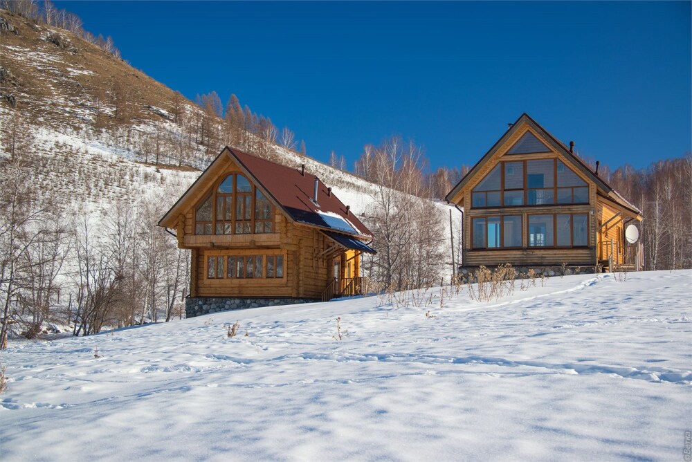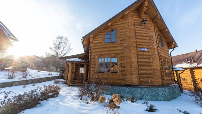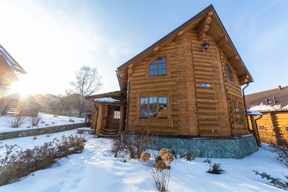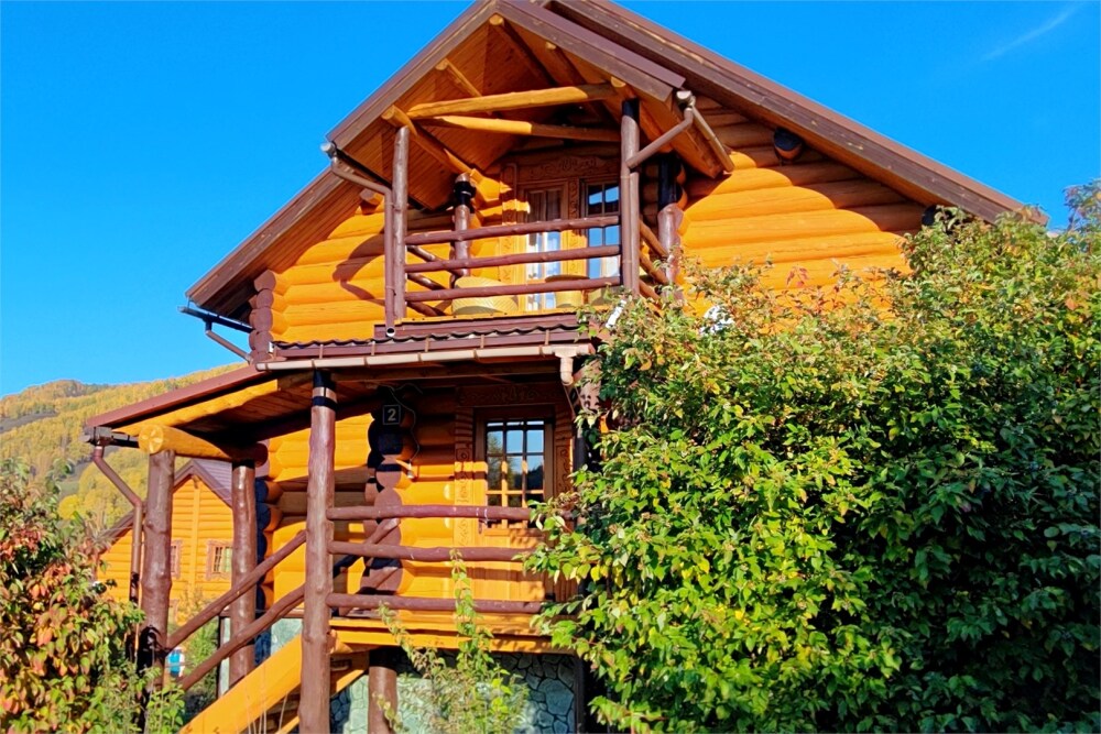 Коттедж построен из алтайского кедра, разделён на две автономные половины — каждая со своим отдельным входом, что идеально подойдёт для отдыха двумя семьями или дружной компанией.