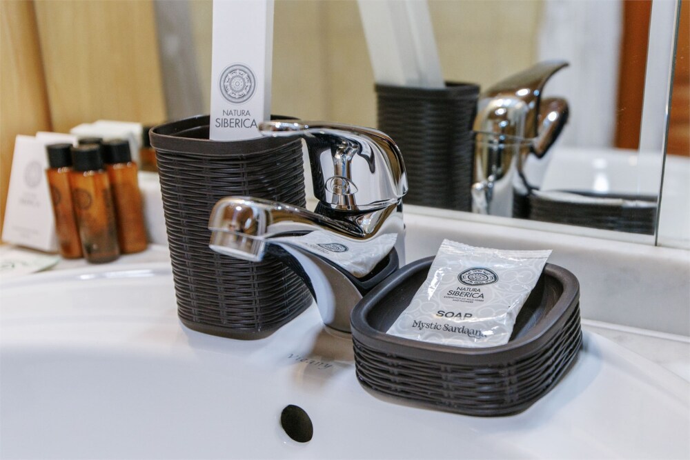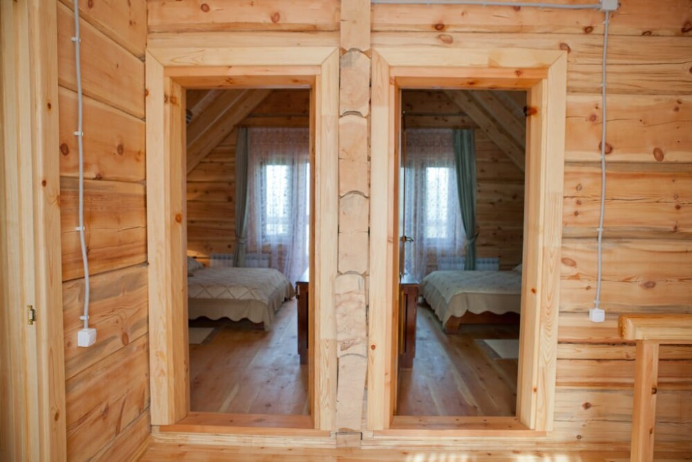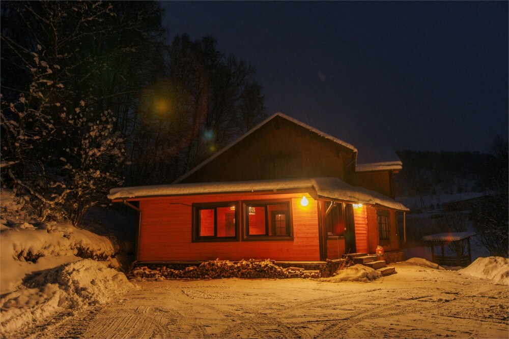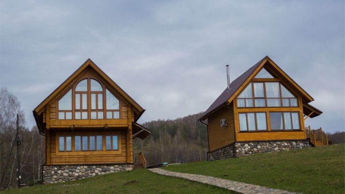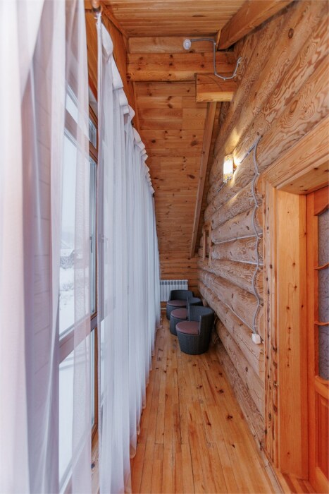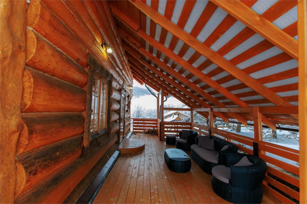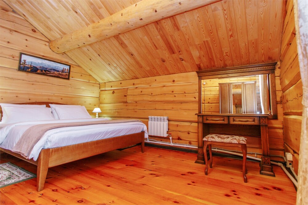 Коттедж построен из алтайского кедра, разделён на две автономные половины — каждая со своим отдельным входом, что идеально подойдёт для отдыха двумя семьями или дружной компанией.