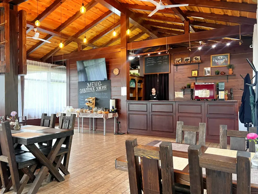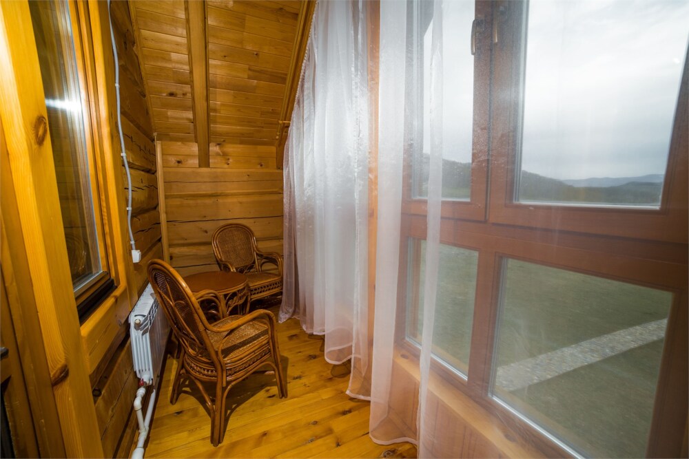 Расположен непосредственно на территории маральника, где утром Вы сможете увидеть маралом за окном за чашкой кофе