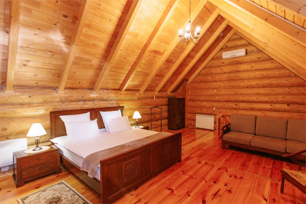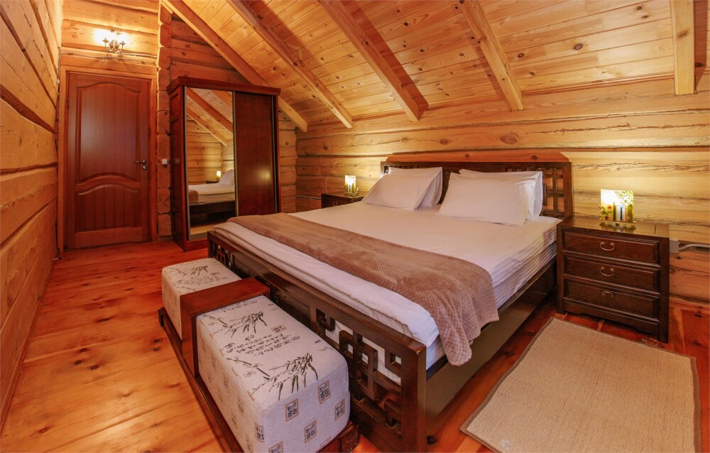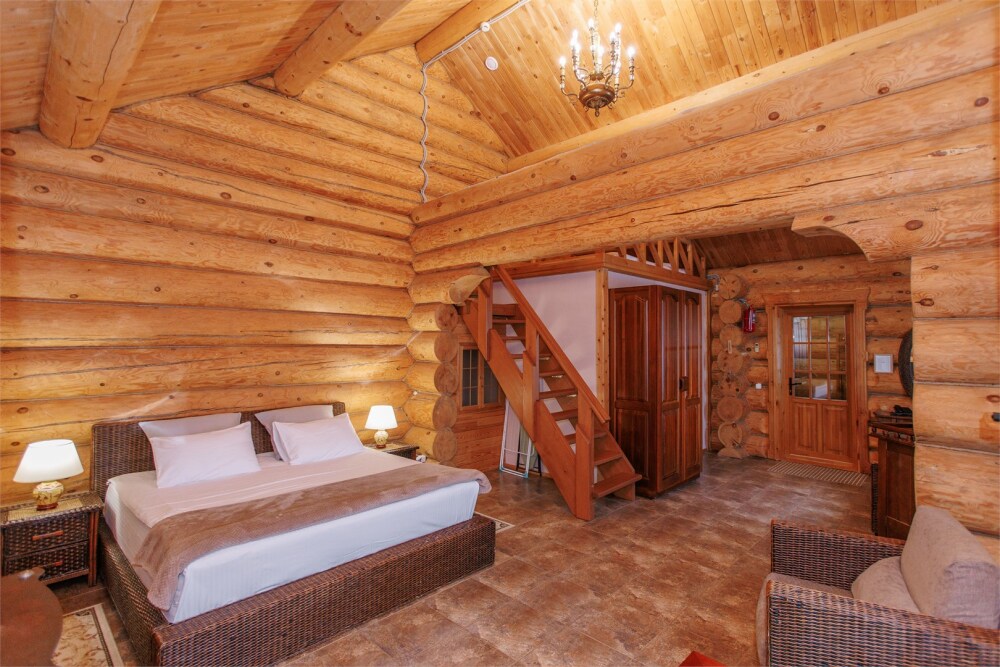 Снаружи - деревня, внутри - «люкс». В бревенчатых коттеджах предусмотрены все удобства и бытовая техника, которые обеспечат Вам комфортный отдых.