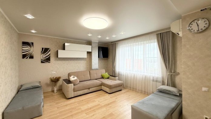 Сдается квартира рядом с торговым кварталом! В новом многоэтажном доме, расположенном в 10 минутах езды на машине от центра города. С новым и качественным ремонтом.