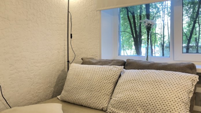 Студия располагается в 10-ти минутах ходьбы от метро «Комендантский проспект». Остановки общественного транспорта и продуктовые магазины - в 3 минутах ходьбы от дома.