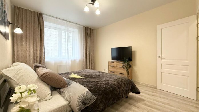 В квартире два телевизора, современная мебель, новая сантехника, натяжные потолки, стеклопакеты, хорошая шумоизоляция, фен, утюг, гладильная доска, сушилка для белья, стиральная машина. Есть все необходимое для проживания. Кухня оснащена всеми необходимыми бытовыми приборами (холодильник, микроволновка, электрический чайник) и столовыми принадлежностями (кастрюли, сковорода, кружки, тарелки, столовые приборы). Цифровое СМАРТ-телевидение, высокоскоростной безлимитный интернет (wi-fi). Ванная и туалет – кафель, санузел раздельный.
